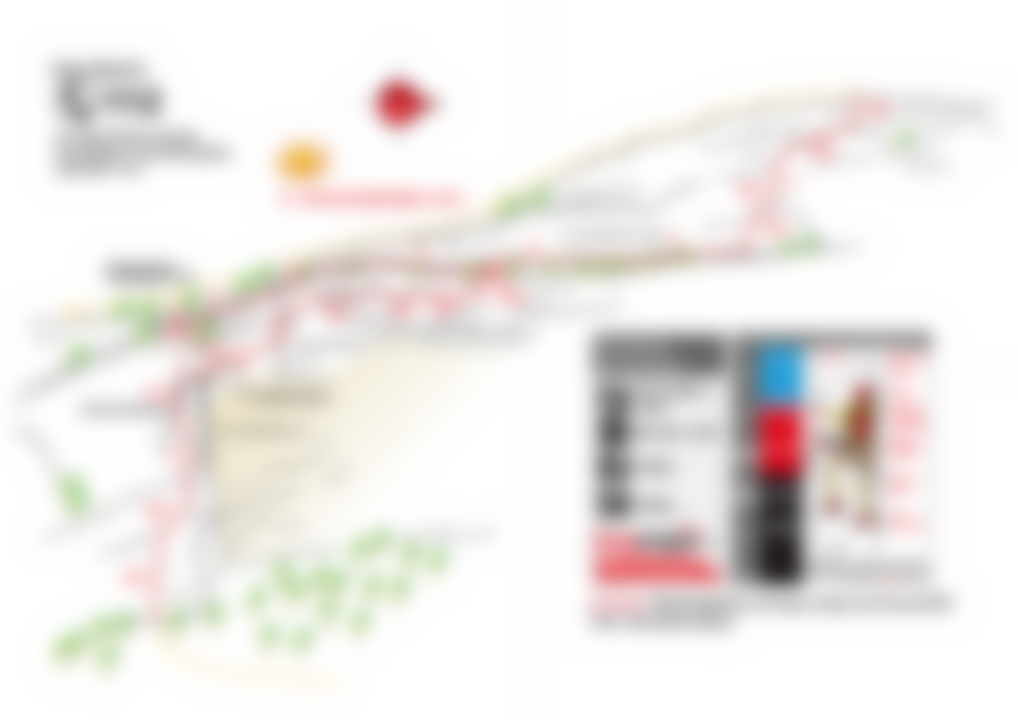 Durch die Einstiegswand auf vielen Bügeln leicht bis `La Chandelle`. Darüber durch eine Verschneidung C/D hoch zu einer Passage hinter einem kleinen Felsturm vorbei. Über einen kurzen Balken. Danach verzweigt sich der KS: Links die leichte Variante und ein Notausstieg. Rechts weiter über einen 2.Balken in eine schräge Querung bis `Les Devers`. Ab hier steil aufwärts auf D zur sehr kraftfordernden, langen `La Traversee des Toits` D/E, die extrem abdrängend ist durch den geringen Abstand zwischen Griffstangen und Tritten. Vorm Ausstieg auf die Gehpassage befindet sich ein Abseilpunkt ACHTUNG 70m! Nach der Vereinigung mit dem leichten Ast folgt die versicherte Gehstrecke `La Grande Vire`. Durch eine schöne Schlusswand auf Bügeln hinauf zur letzten C/D-Stelle im Ausstieg.