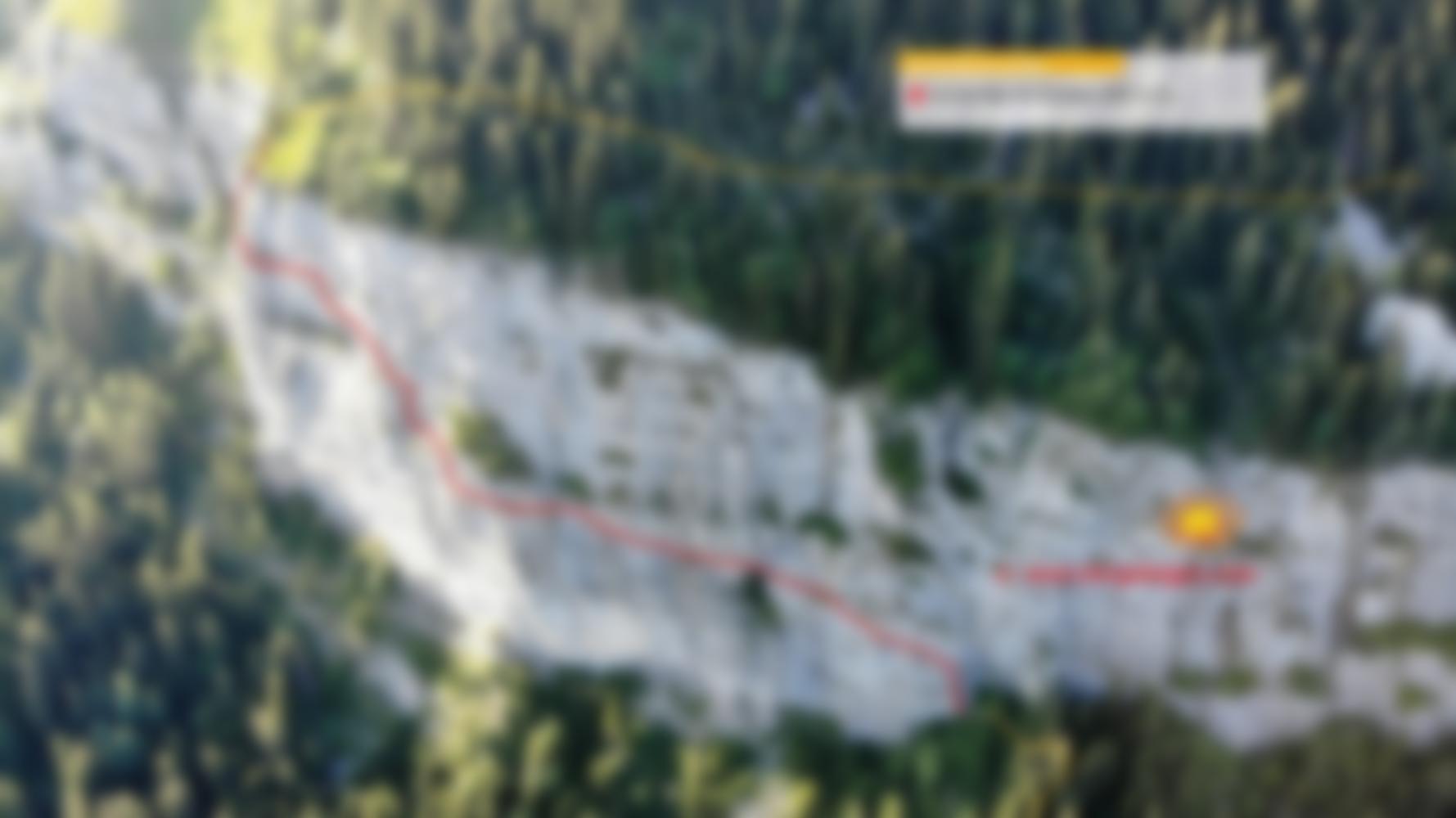 Vom Ausstieg auf einem Pfad über der Wand nach Osten zu einer Forststraße und auf dieser (Abkürzer bei schwach markiertem Baum möglich) zurück zum Parkplatz