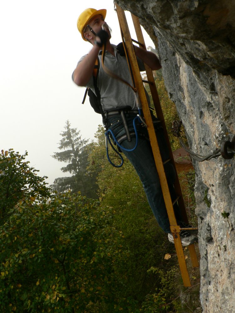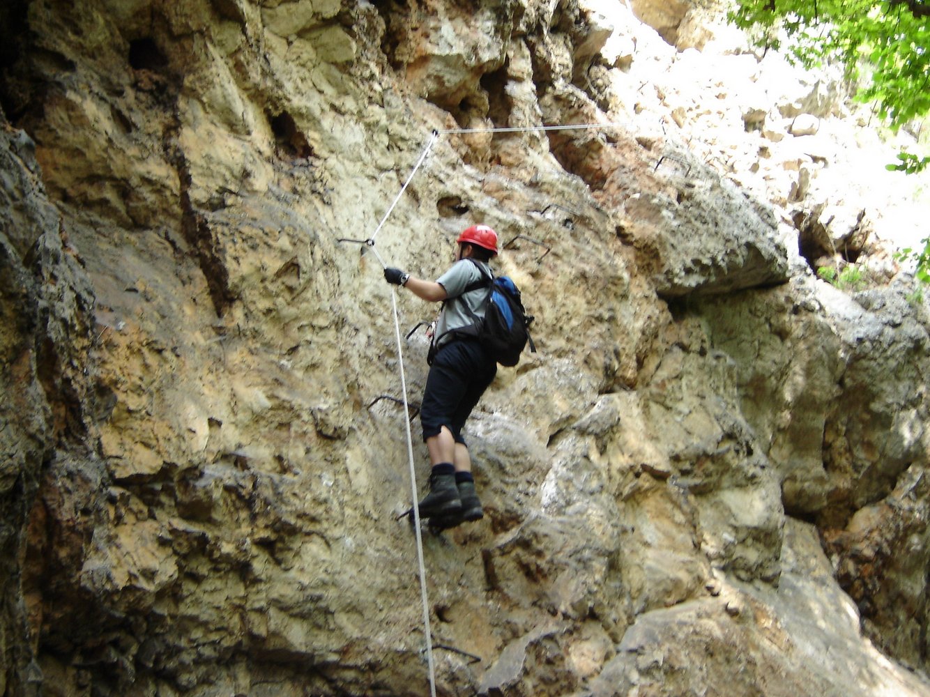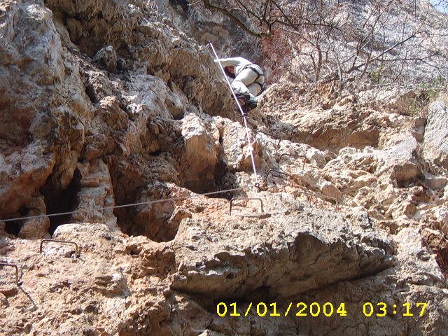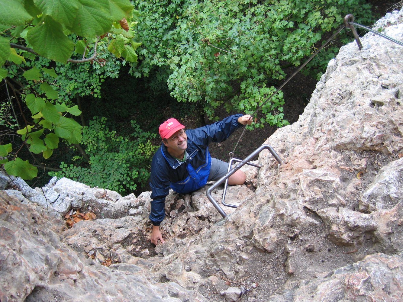 Hohe-Wand-Runde (17.05.2009). Sehr origineller - wenn auch schon etwas "abgeschmierter" - Klettersteig. Wie beschrieben: kurz und rassig. Rassig aber kurz.,