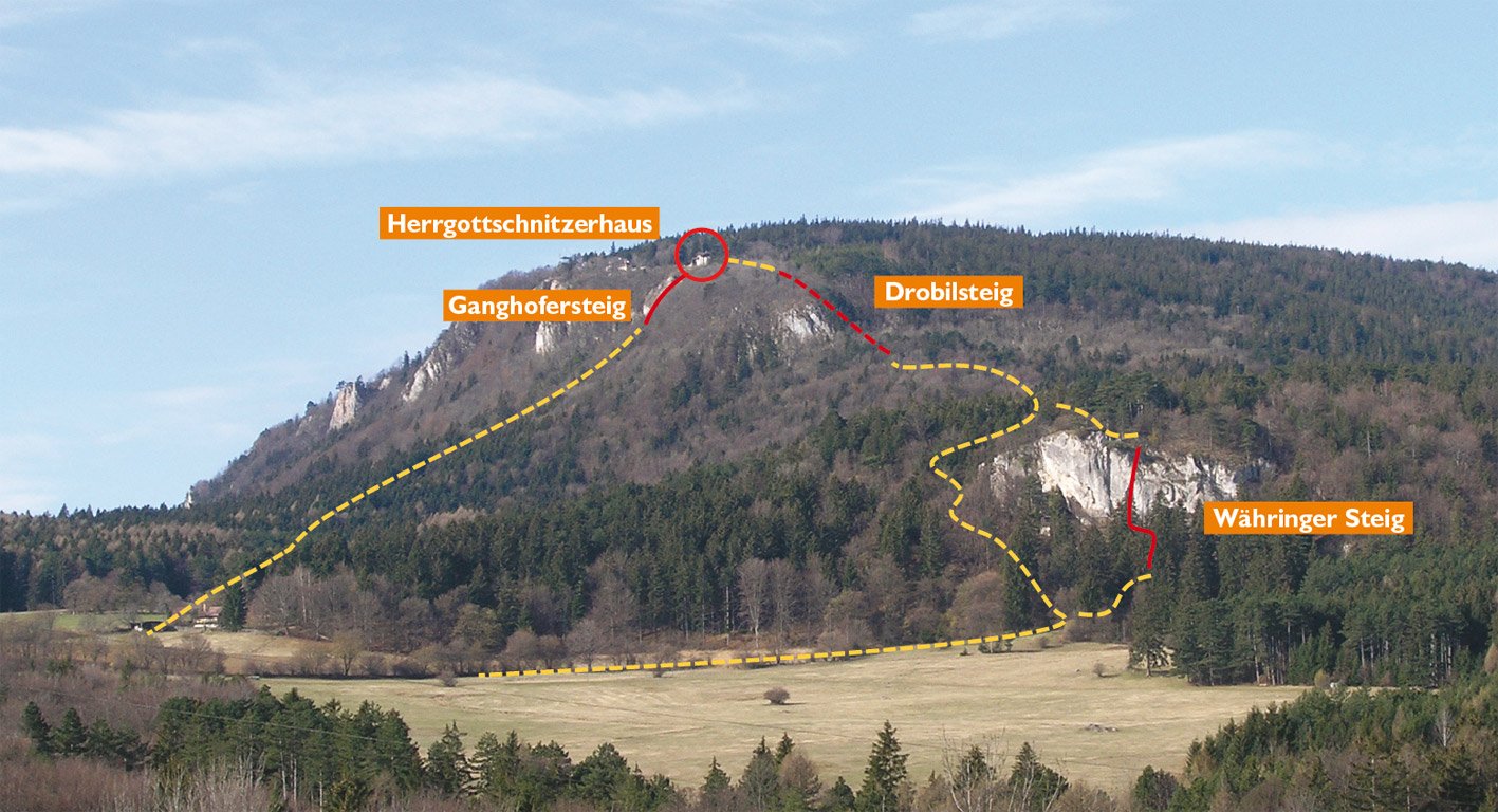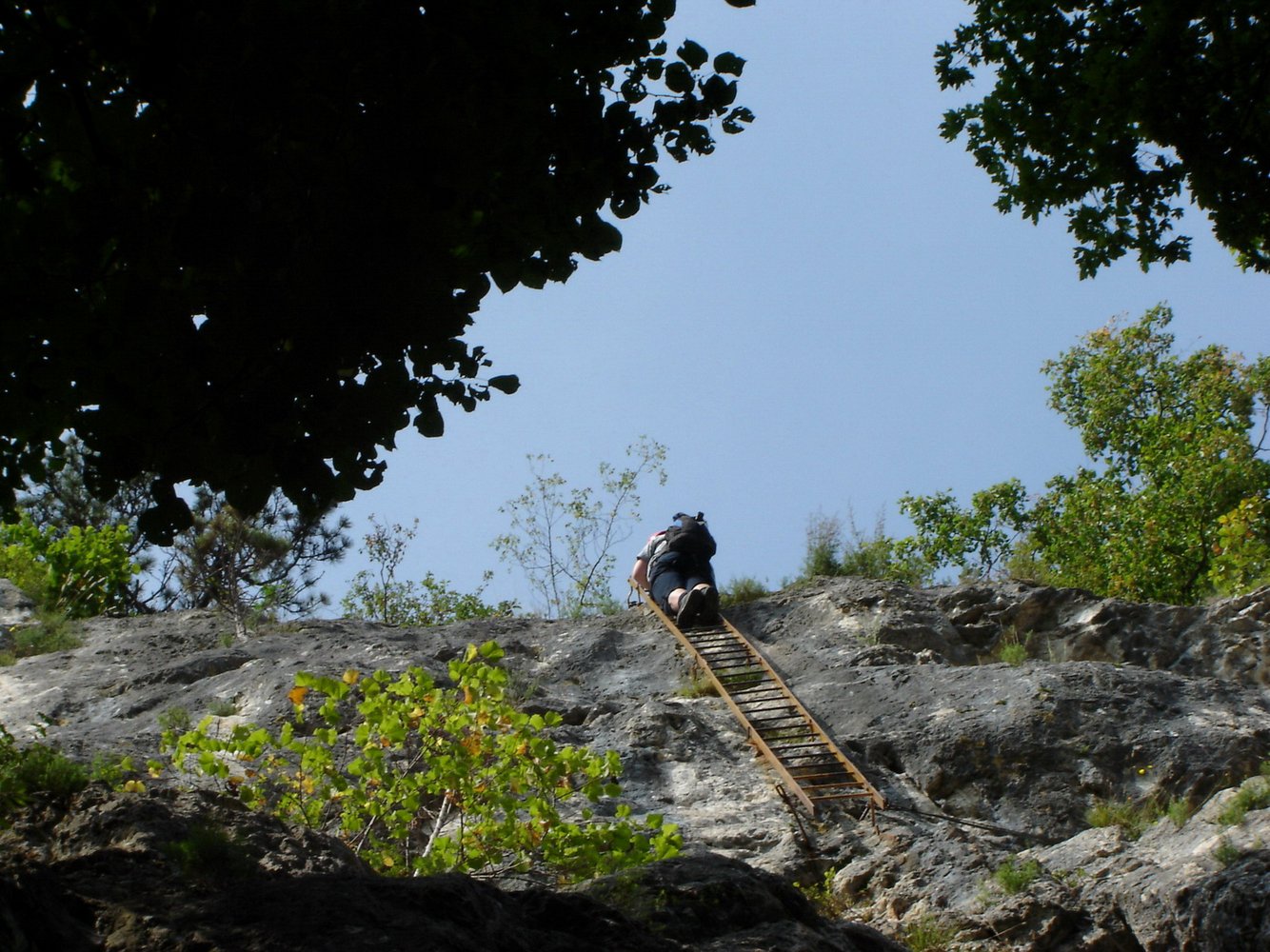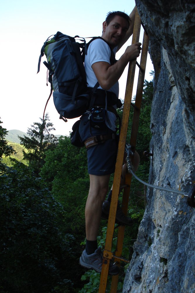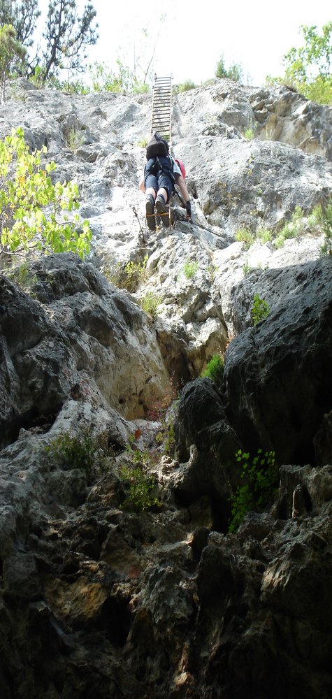 Hohe-Wand-Runde (17.05.2009). Sehr origineller - wenn auch schon etwas "abgeschmierter" - Klettersteig. Wie beschrieben: kurz und rassig. Rassig aber kurz.,