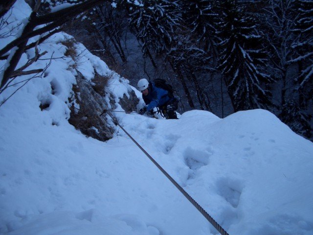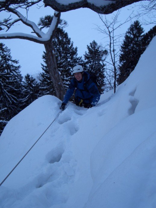 etwa 70 cm Schnee (Pulver), Seil nicht vereist,