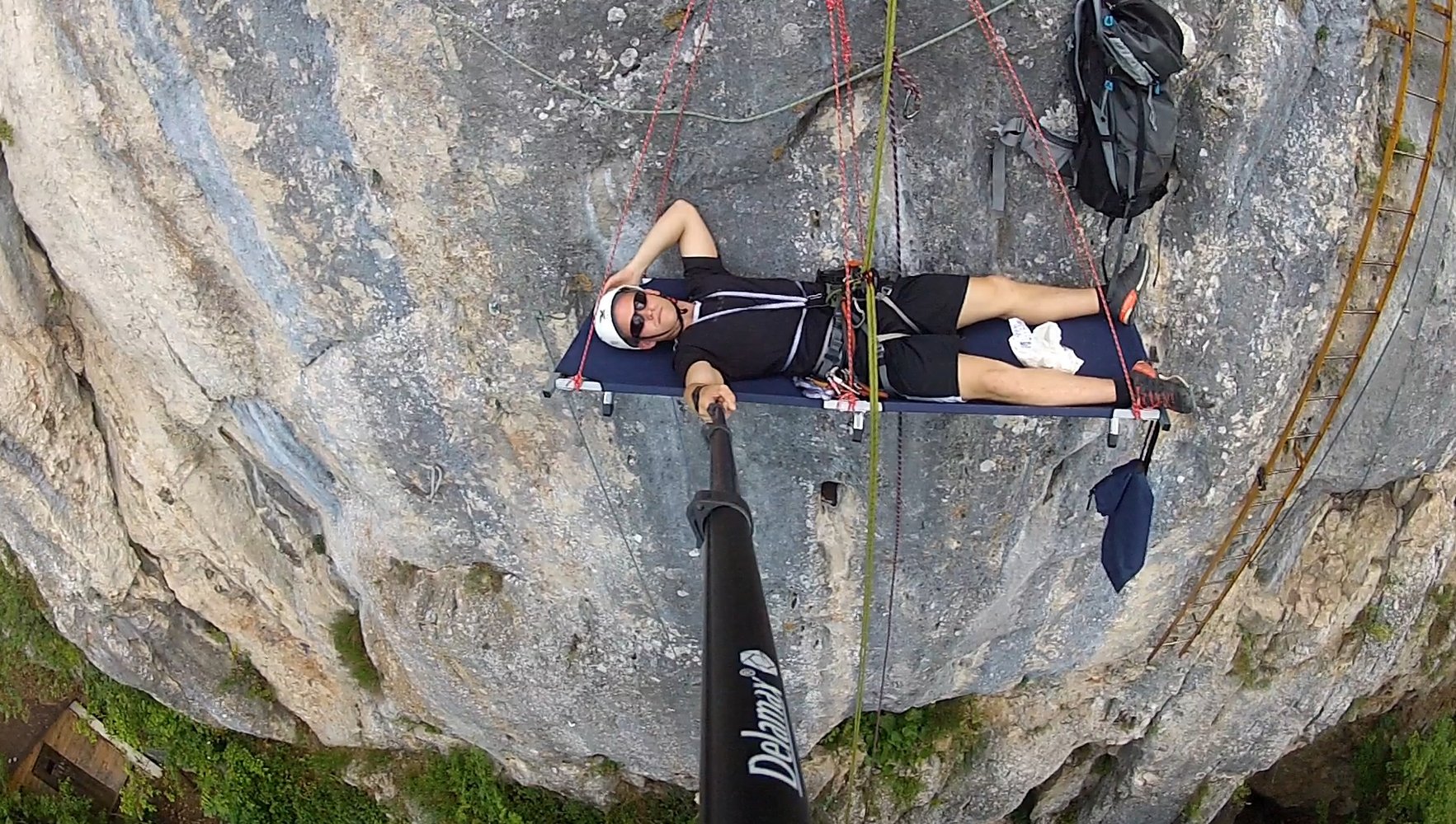 Auch mit dem selbstgebastelten Portaledge kann man hier gut üben =),
