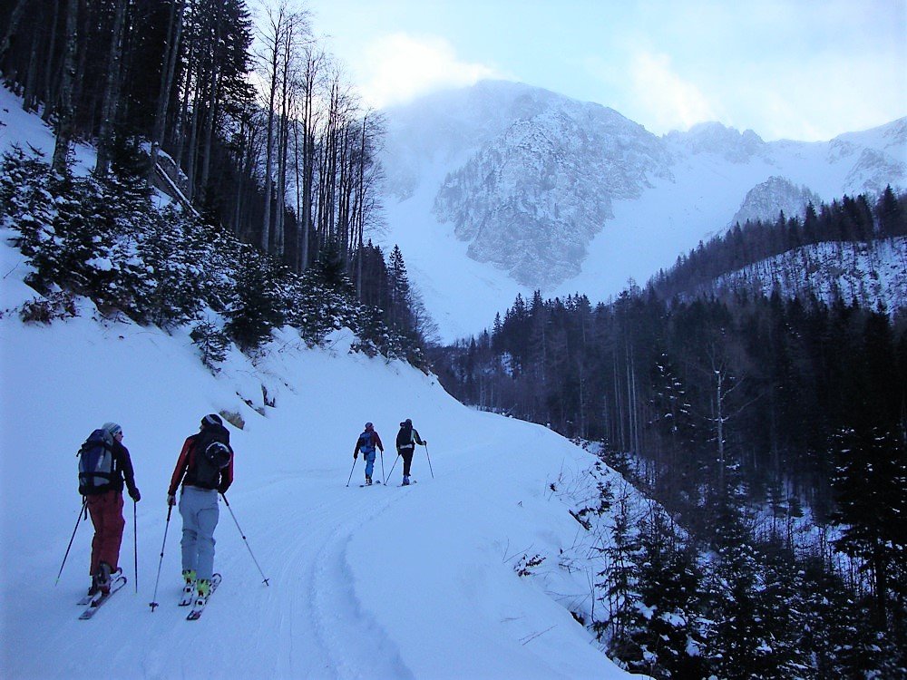 Gemütliche Skitour, die sowohl von den Höhenmetern als auch von den Schwierigkeiten nicht allzu anspruchsvoll ist, aber mit phantastischem Ambiente besticht. Für die letzten Meter zum Gipfel kein Muß, aber ratsam: Steigeisen. Und sollte doch noch der Wunsch nach einer Verlängerung der Tour geweckt werden, so kann man den Kosiak mitnehmen oder Richtung Hochstuhl weitergehen.