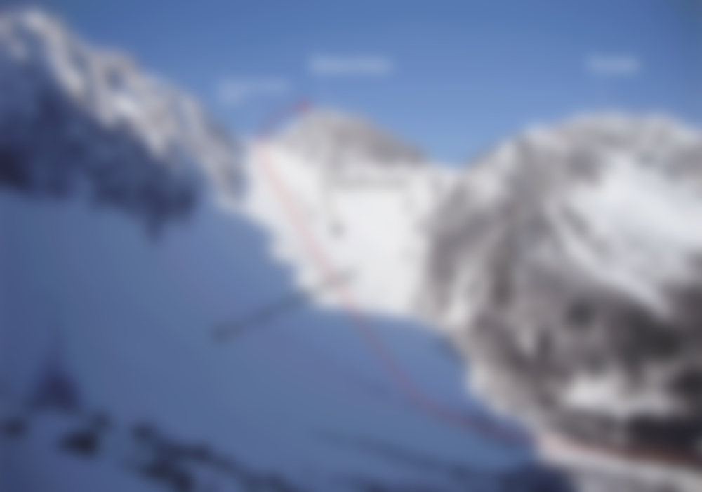 ABFAHRT: Wie Aufstieg. Variante: Leuten, denen die Standardabfahrt zu "normal" ist, können die Skier mit zum Gipfel nehmen und kurz vor dem Gipfel in die Ostrinne einfahren. Diese, etwa 200 Hm lange Unternehmung sollte nur bei guten Verhältnissen und ausreichend Schnee gewagt werden. Die Abfahrtsvariante wird schon vom Aufstieg aus gesehen.