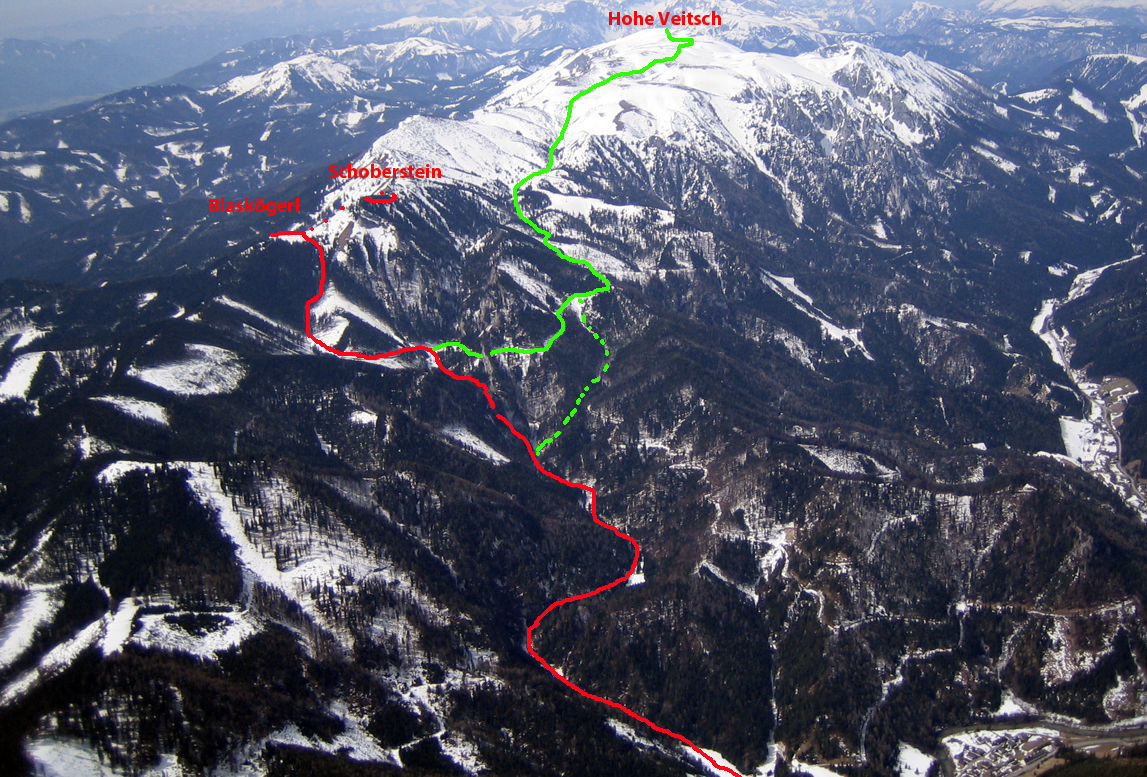 Interessante und kurze Skitour zu den romantischen Veitschalmen am Gipfel des Blaskögerls. Zu Beginn geht durch einen engen schluchtartigen Graben (siehe Bemerkung!), dann folgen nette Hänge zur Alm. Bei sicheren Verhältnissen kann man zum Schoberstein, Ramkogel oder Sperrkogel weitergehen.
