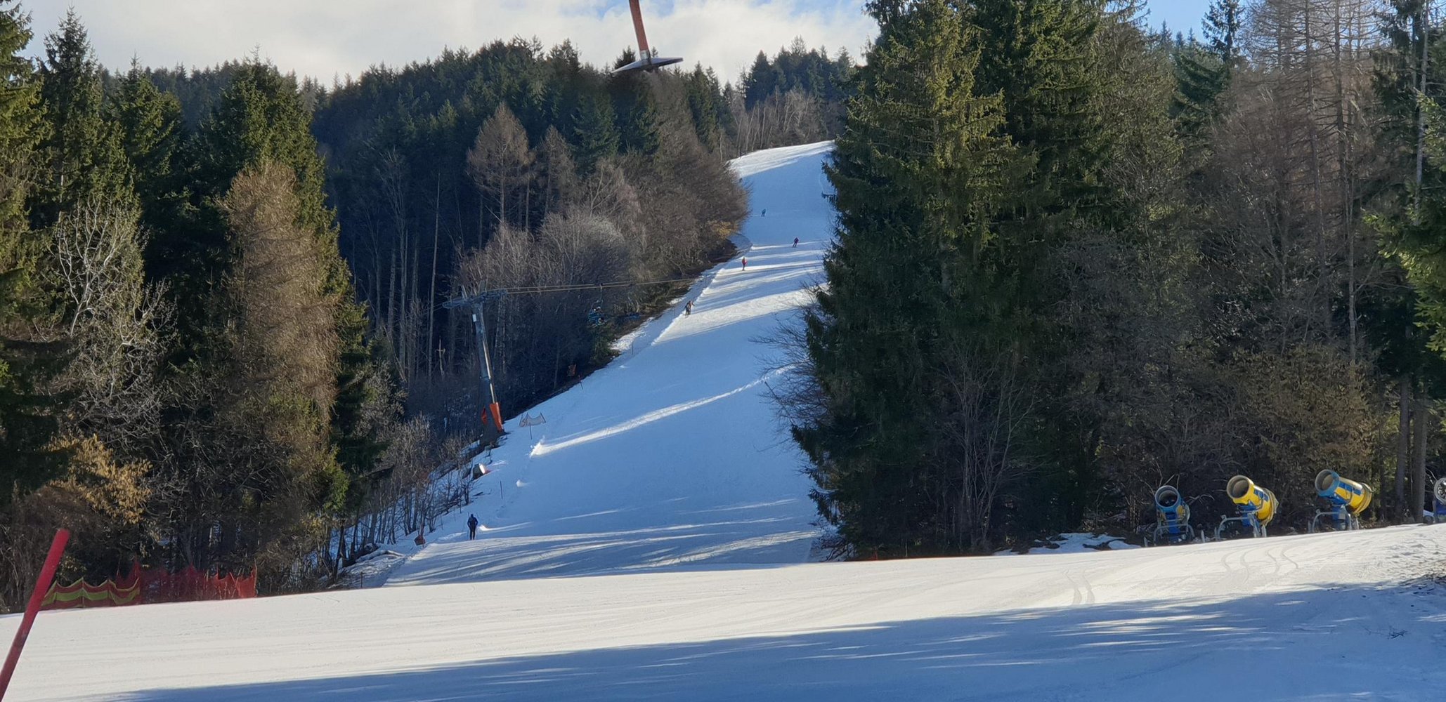 Der Aufstieg erfolgt auf eine Skitouren-Spur am linken Pistenrand.