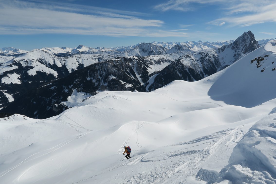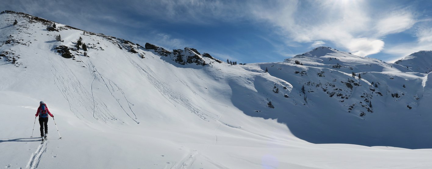Lange, unten etwas abenteuerliche Skitour. In Verbindung mit dem Brechhorn fast 1600 Hm und landschaftlich top!