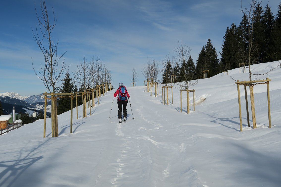 Abfahrt wie Auftieg. Unten auf der Skipiste (welche man bei der Abzweigung Schönaualm erreicht) aber weiter bis man am Ende direkt auf den schönen Wiesen nach Rettenbach abfahren kann.