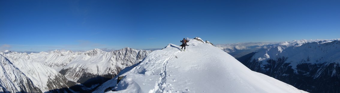 Schöne und im Gegensatz zur Lampsenspitze recht selten besuchte Tour. Gerade wenn sich an der Lampsen die Massen stauen, empfiehlt sich ab der Koglhütte der Abstecher nach rechts zum Grieskogel. Der steile Gipfelhang kann durch die Spurwahl im Bereich des Grates etwas entschärft werden. Bei sicheren Verhältnissen tolle Abfahrt direkt hinunter nach Praxmar.