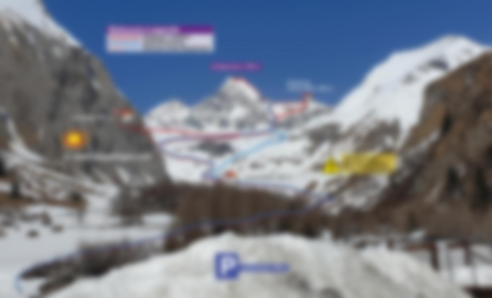 Vom Lucknerhaus über den Fahrweg zur Lucknerhütte aufsteigen und dort weiter in Richtung Stüdlhütte. Auf ca. 2600 m quert man rechts haltend zum Beginn des Ködnitzkeeses. Über den Gletscher steigt man weiter auf bis man in Höhe des sog. Kampl kommt. Hier quert man in der Regel rechts zum Felsgrat unter der Adlersruhe mit der Erzherzog Johann Hütte. Sollte der Schnee in der obersten Südflanke des Könditzkees für eine Abfahrt nicht ausreichen, kann man bereits hier das Skidepot einrichten.