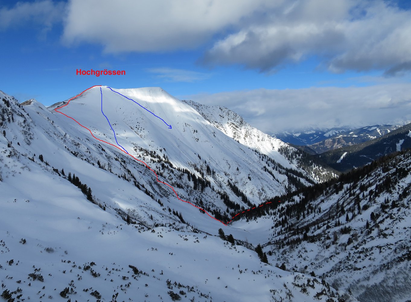 Sehr schöne, aber steilere Skitour auf den Hochgrössen durch das Riednertal mit impossanten aber auch lawinengefährlichen Südflanken.