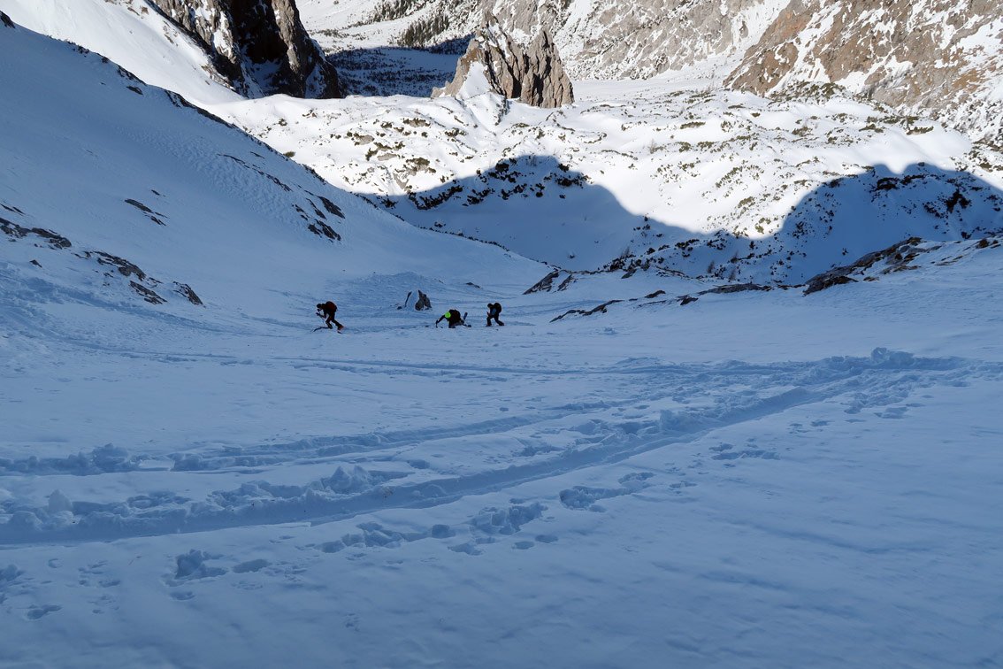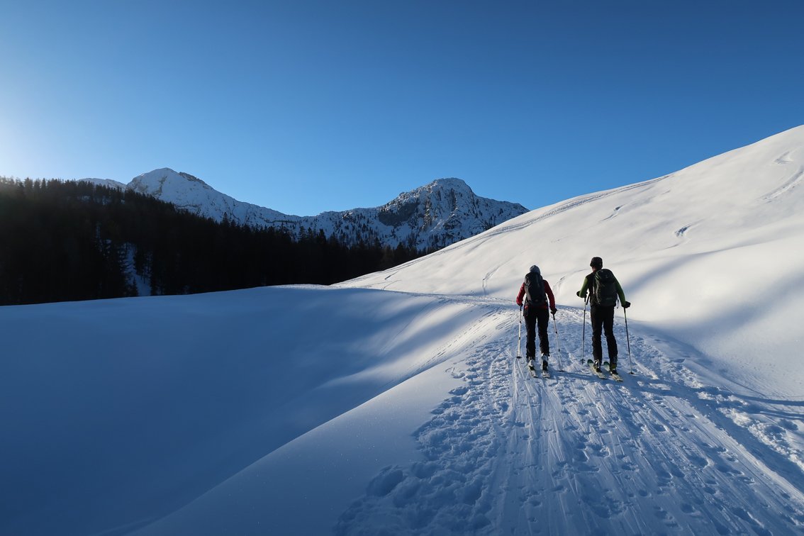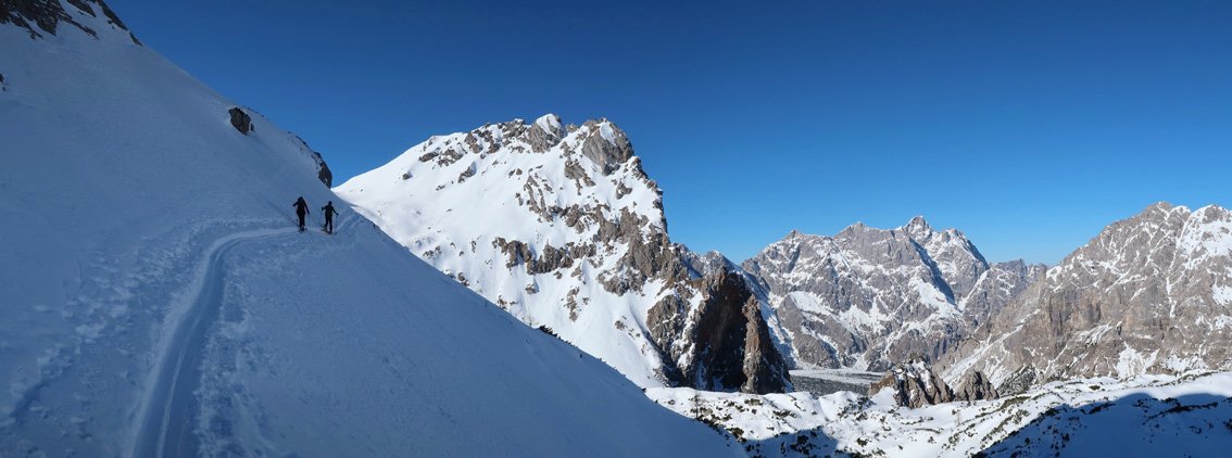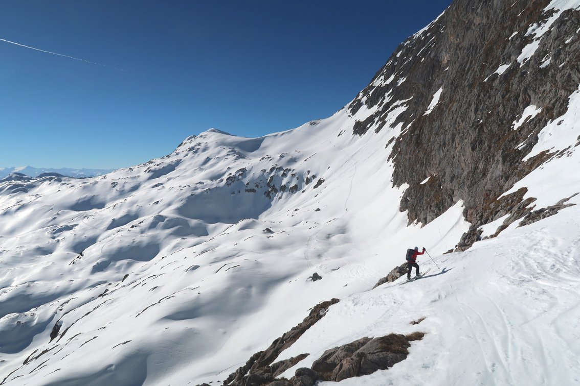 Anmerkung: Unser Track quert bzw. steigt teilweise sehr steil und direkt auf. Je nach Lawinensituation muss man die Tour evtl. anders als bei unserem Track anlegen.