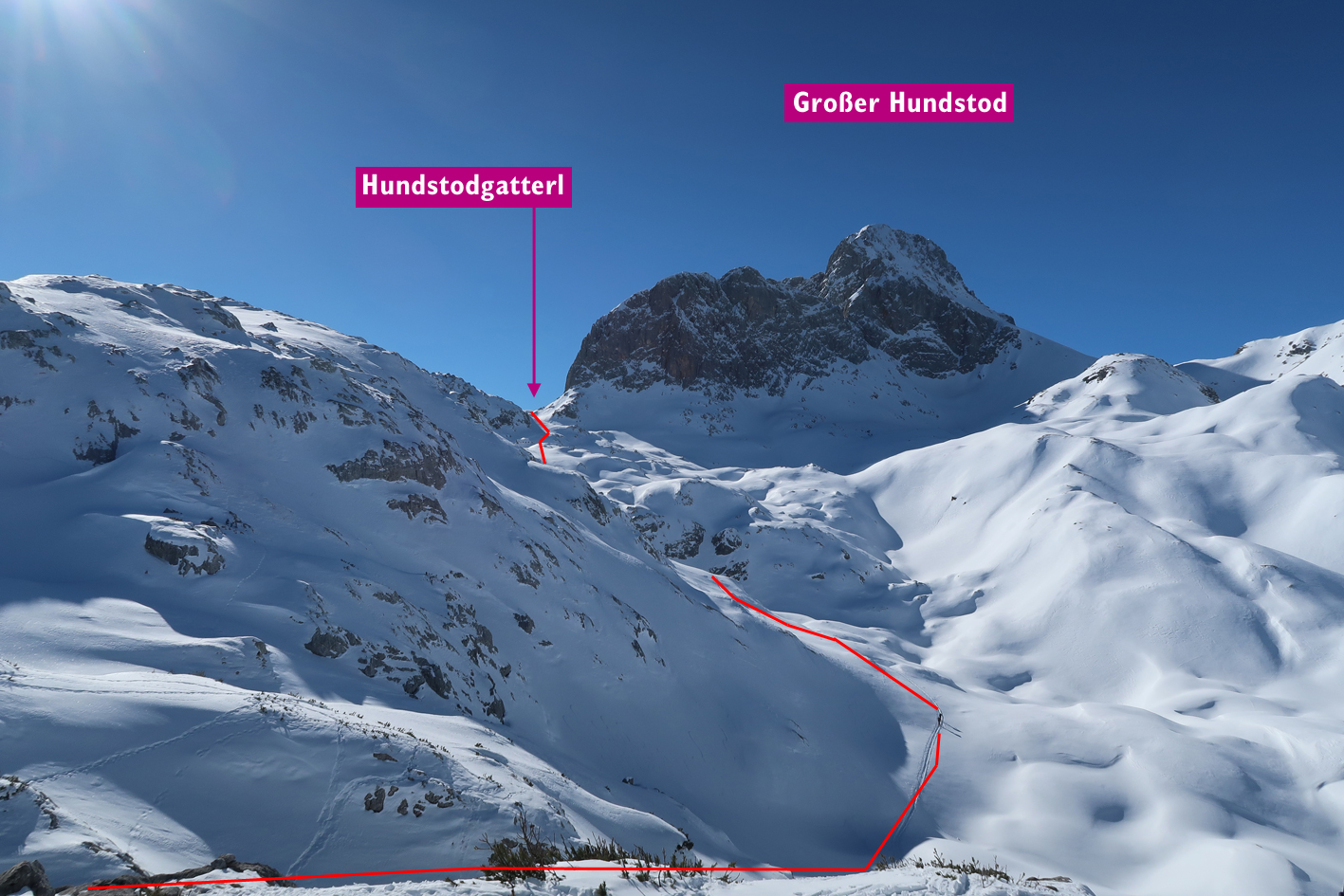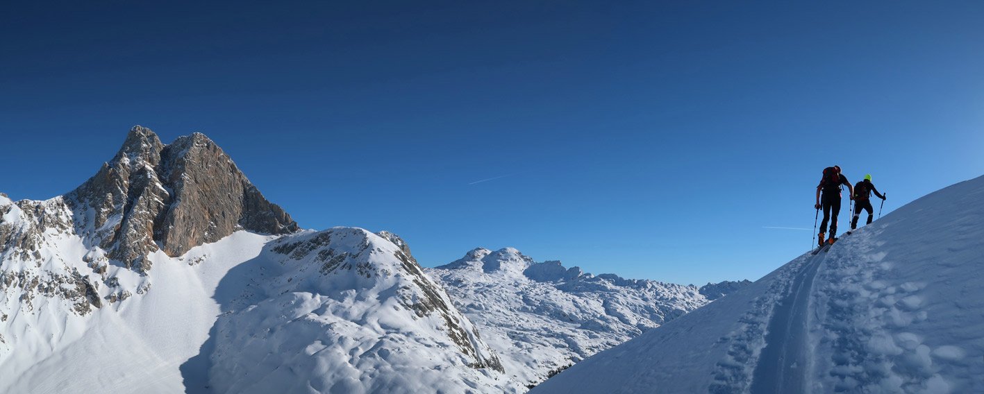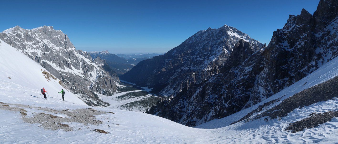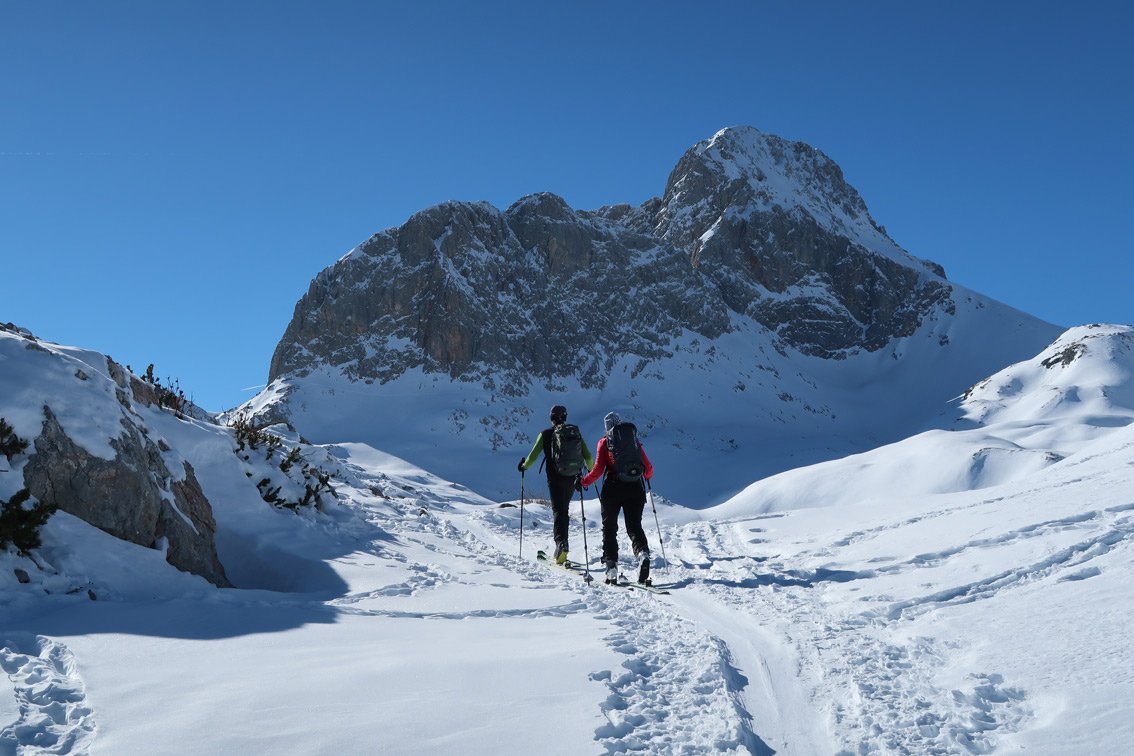 Anmerkung: Unser Track quert bzw. steigt teilweise sehr steil und direkt auf. Je nach Lawinensituation muss man die Tour evtl. anders als bei unserem Track anlegen.