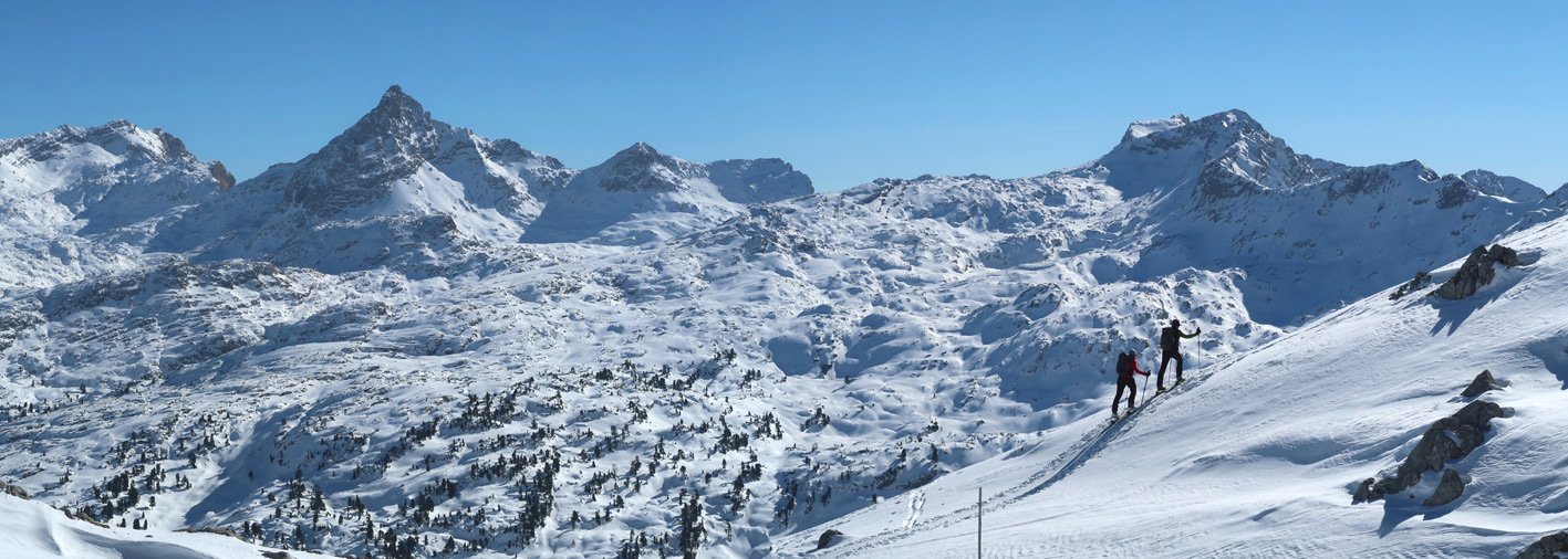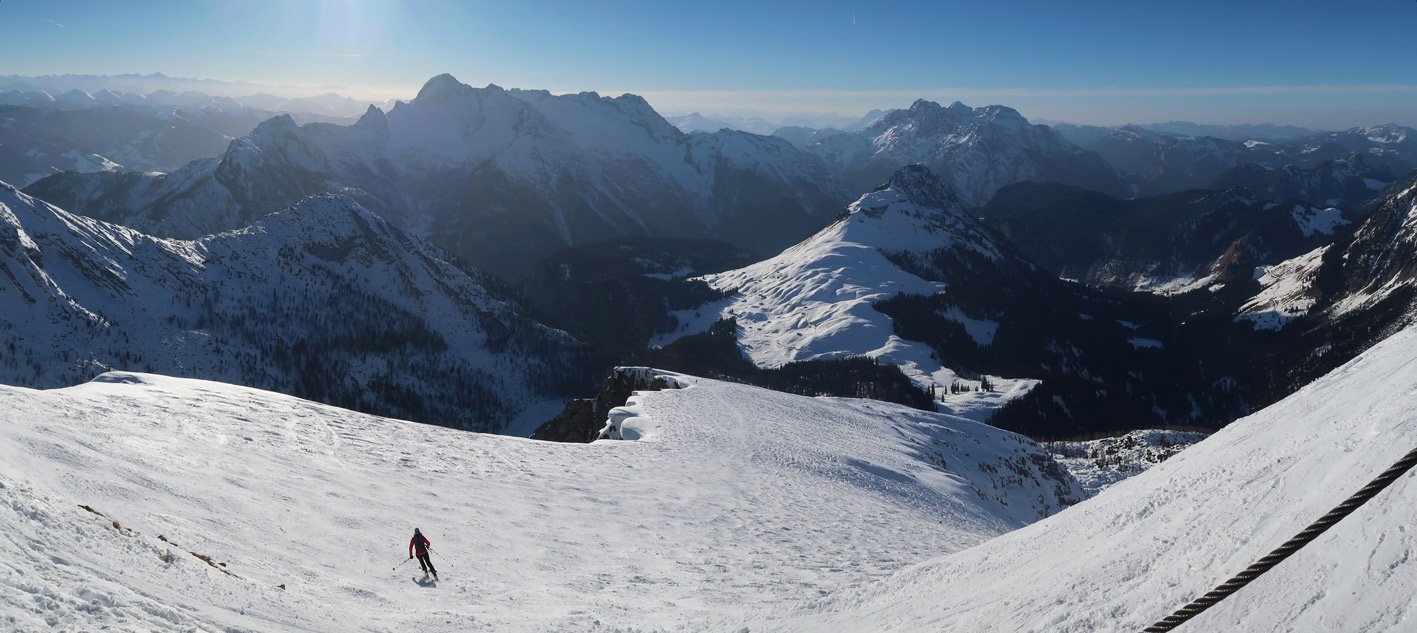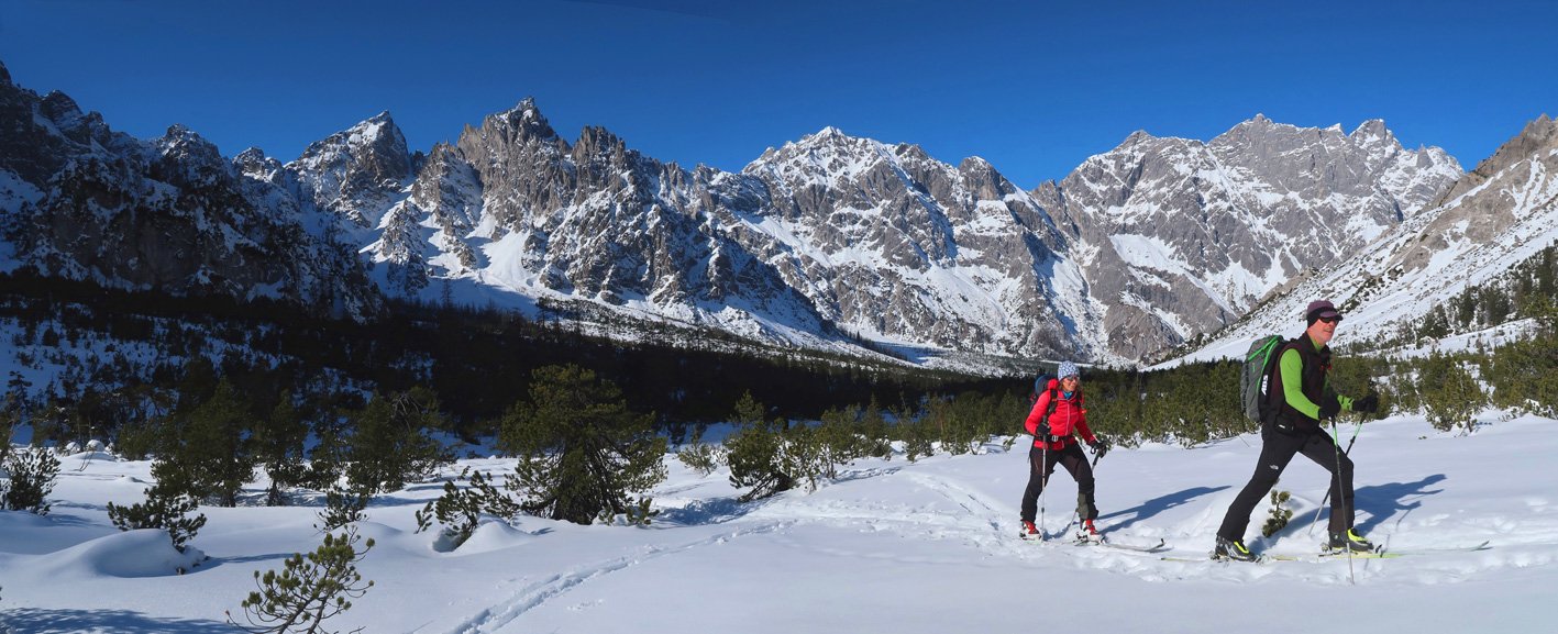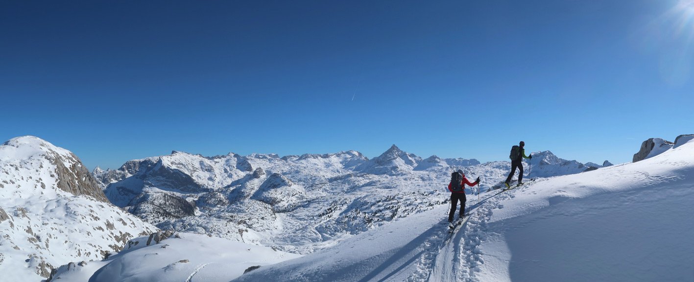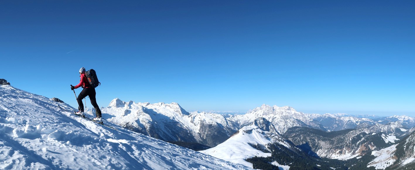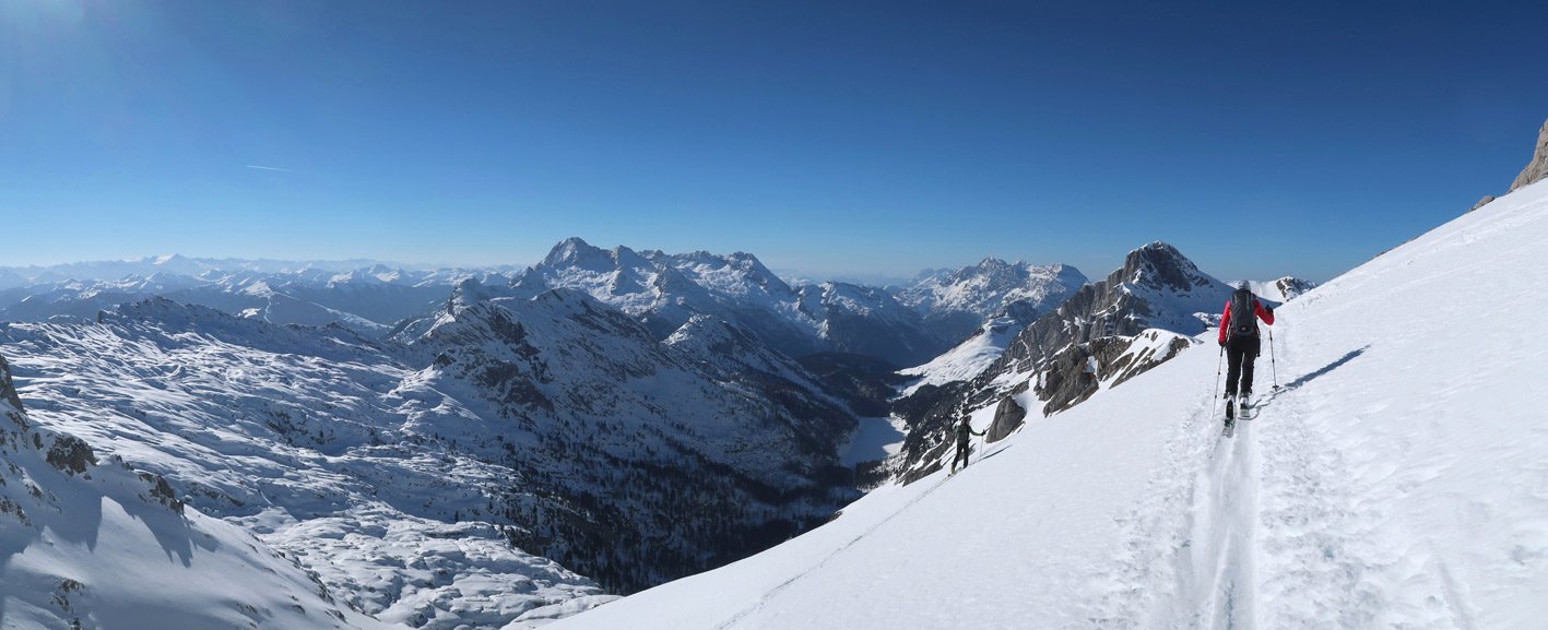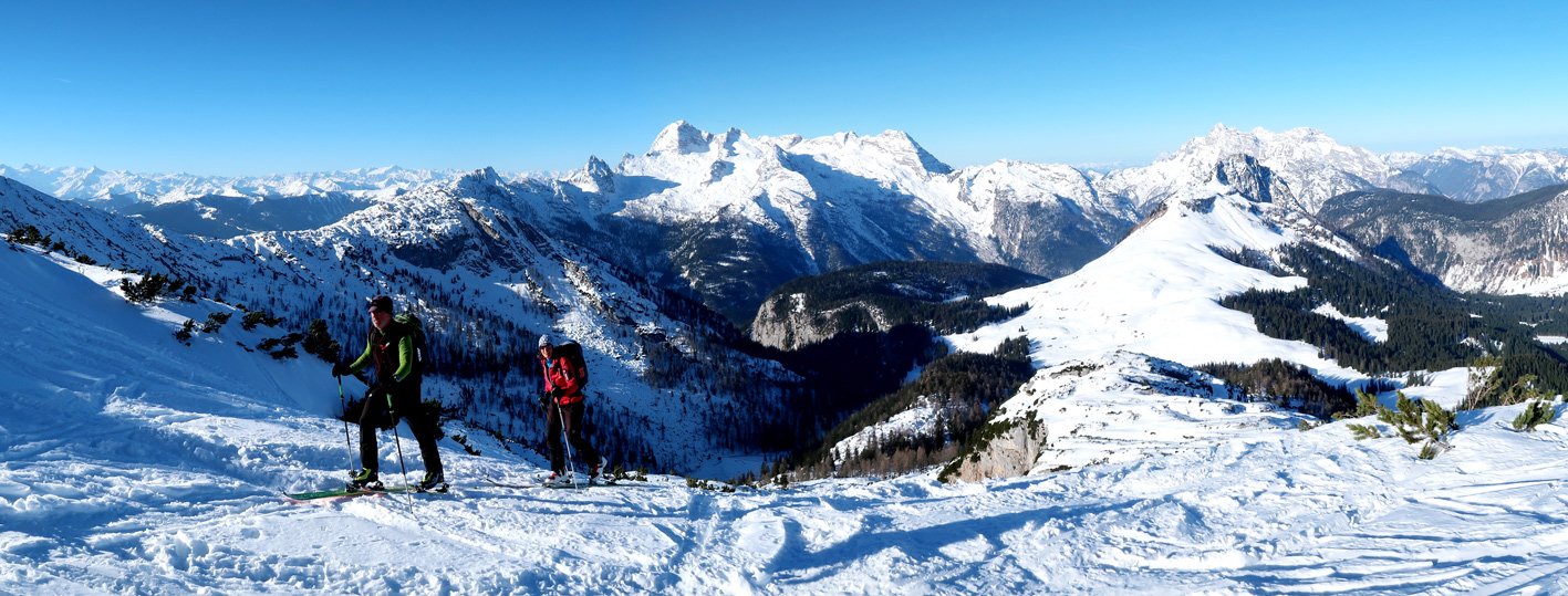 3000 Hm und 32 km lang - das sind Werte über die man sicher genauer nachdenkt, bevor man sich für diese fantastische Skitourenrunde entscheidet. Es teilt sich aber recht gut auf, ein langer Anstieg hinauf auf das Seehorn, dann ein nicht ganz so langer Aufstieg zum Hundtodgatterl und am Ende von der Hochwies noch mal ca. 500 Hm zurück auf den Seehorn Gipfel. Mit 9-11 Stunden sollte man rechnen, dann aber steht einer perfekten Skidurchquerung nichts mehr im Wege. Steile Abfahrten, steile Anstiege und wunderschöne, tlw. sehr einsame Landschaften stehen an diesem langen Skitourentag auf dem Programm.