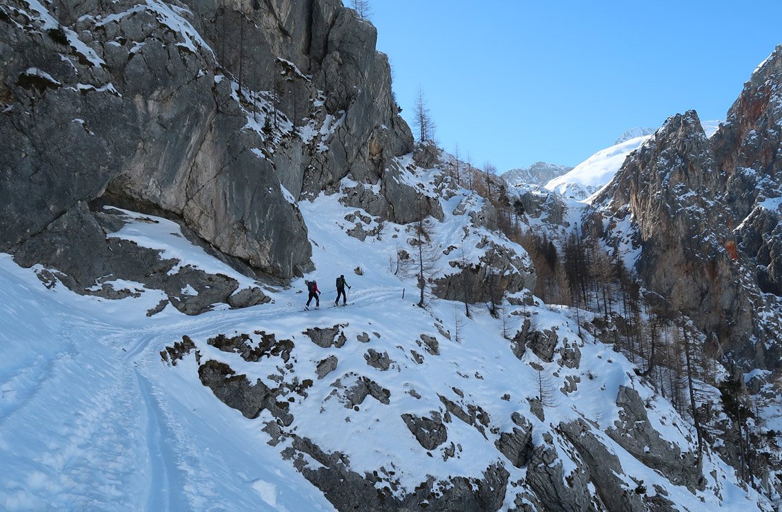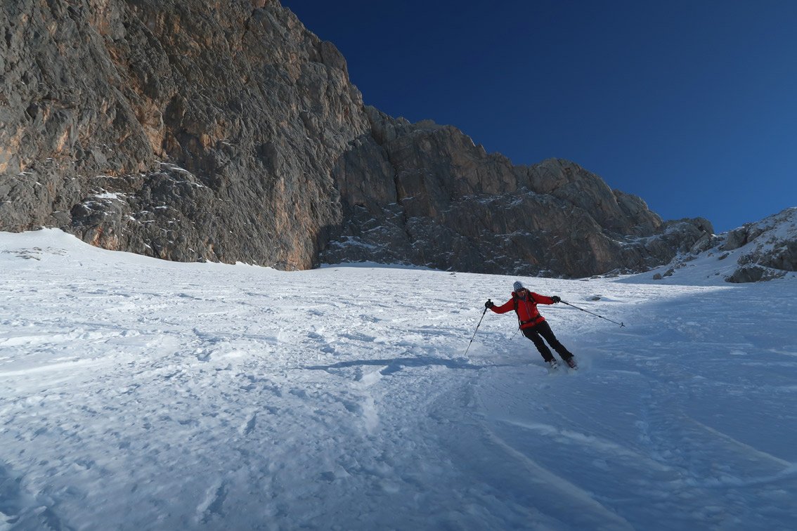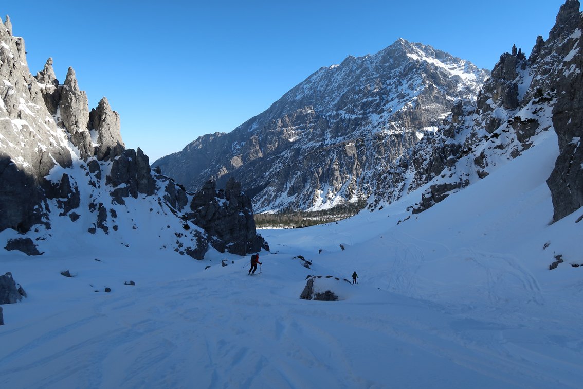 - Die Abfahrt durch den Loferer Seilgraben - in der Mitte sehr steil.