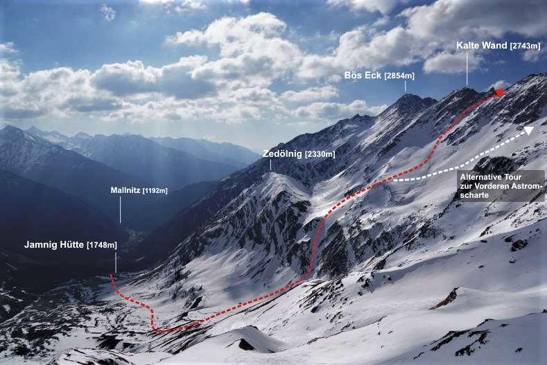 Schöne nordseitig ausgerichtete Tour, die vor allem im Frühjahr bei sicheren Firnverhältnissen zu empfehlen ist. Wie bei allen Touren im Mallnitzer Tauerntal lassen der hochgelegene Ausgangspunkt und seine gute Erreichbarkeit über die Straße noch Skitourenfreuden spät im Frühjahr zu. Die fürs Frühjahr günstige Exposition lässt den Schnee nicht so rasch auffirnen, wodurch man nicht in die Gefahr von Nassschnee Lawinen gerät. Je nach aktuellen Temperaturen und Schneeverhältnissen steht einem während der Tour auch ein etwas ostseitigeres Tourenziel als Alternative zur Verfügung: die vordere Astromscharte!