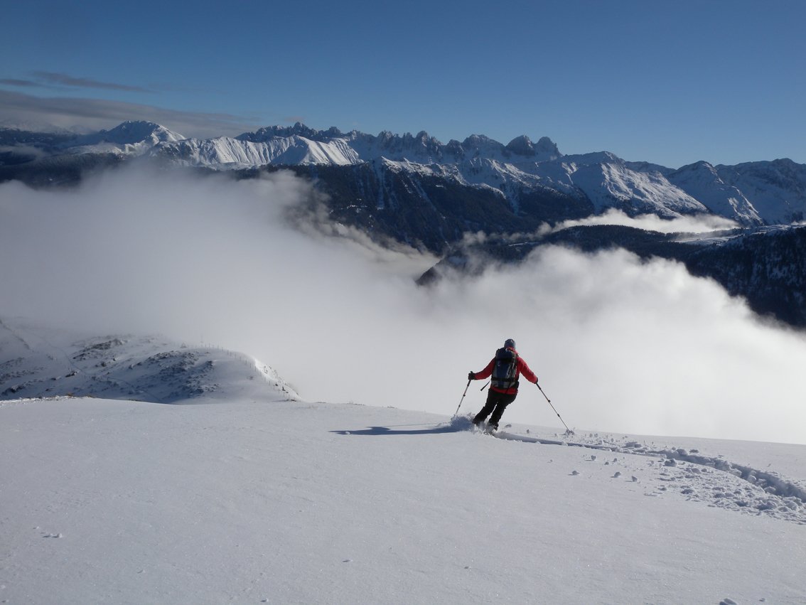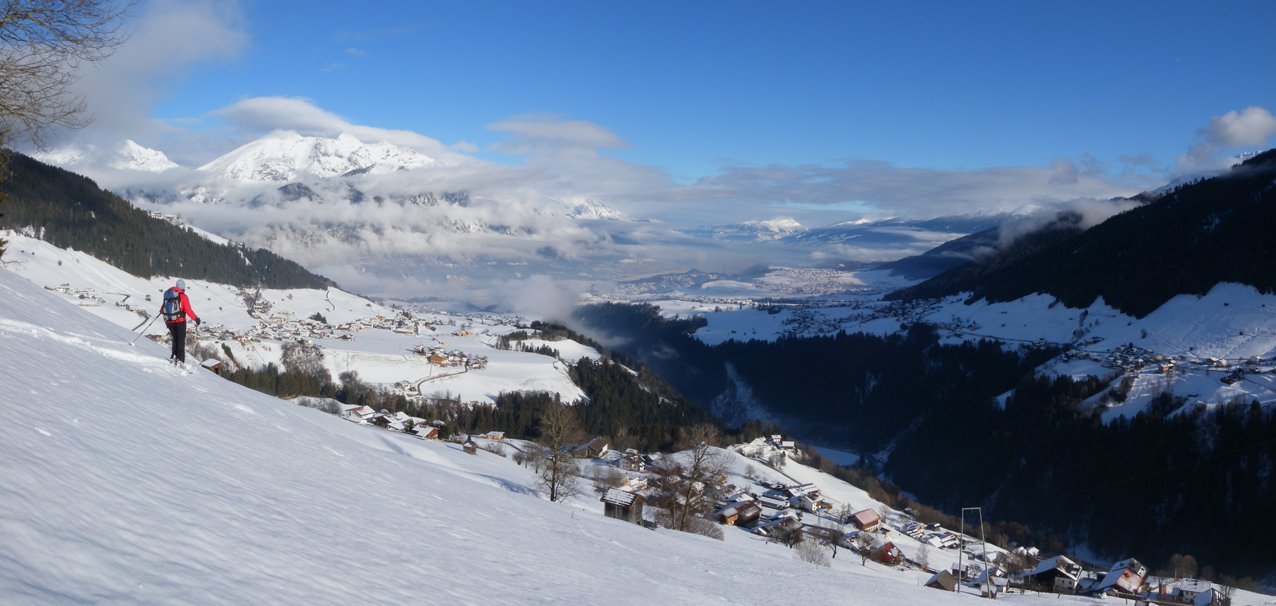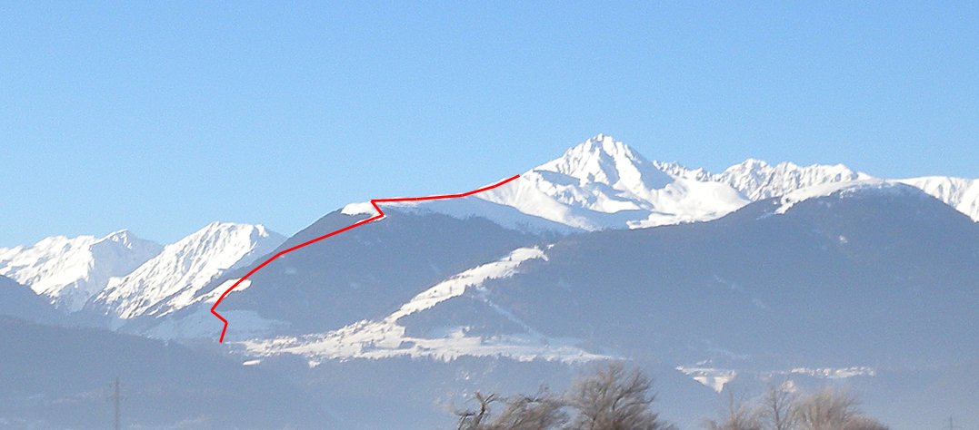 Schöne, leichte Skitour von Sellrain auf das Kögele. Unten Wiesen, dann Wald mit Forststraßenpassagen und oben ein langer, meist flacher, breiter Kamm ergeben eine schöne Einsteigertour. Wer den langen Kamm oben nicht bis zum Ende gehen will, kann auch beim Wetterkreuz auf dem ersten Kammhügel die Gipfelrast machen. Gesamt eine eindrucksvolle Skitour mit tollen Blicken in das Inntal, zu den dolomitenähnlichen Kalkkögelen und zu den Gletschergipfeln der Stubaier Alpen.
