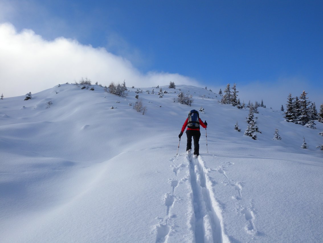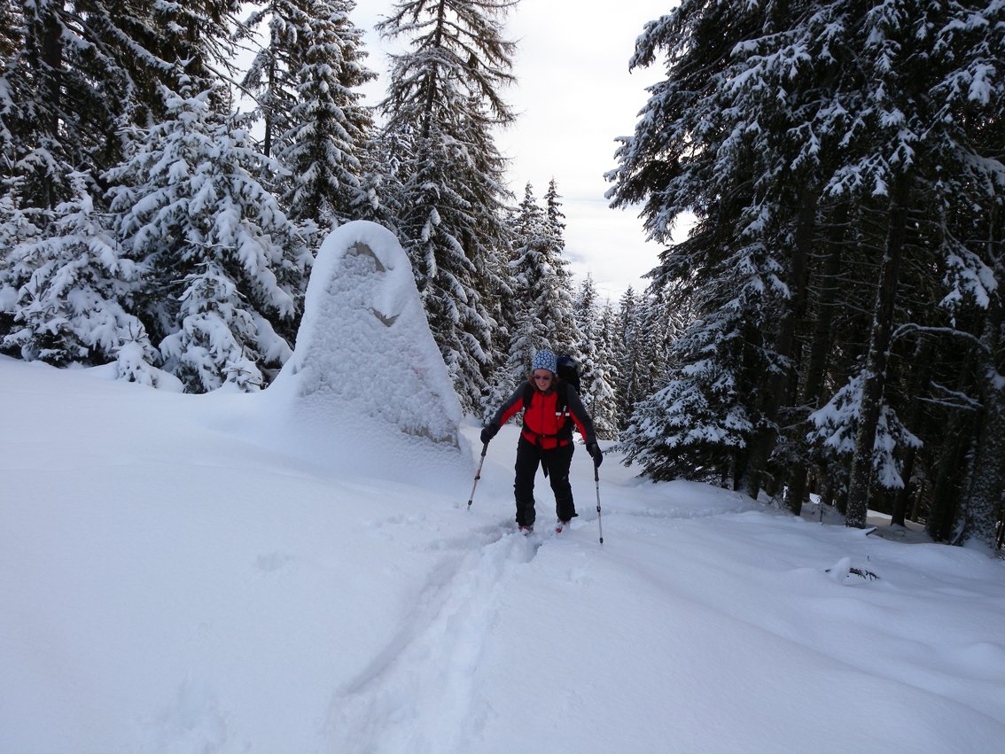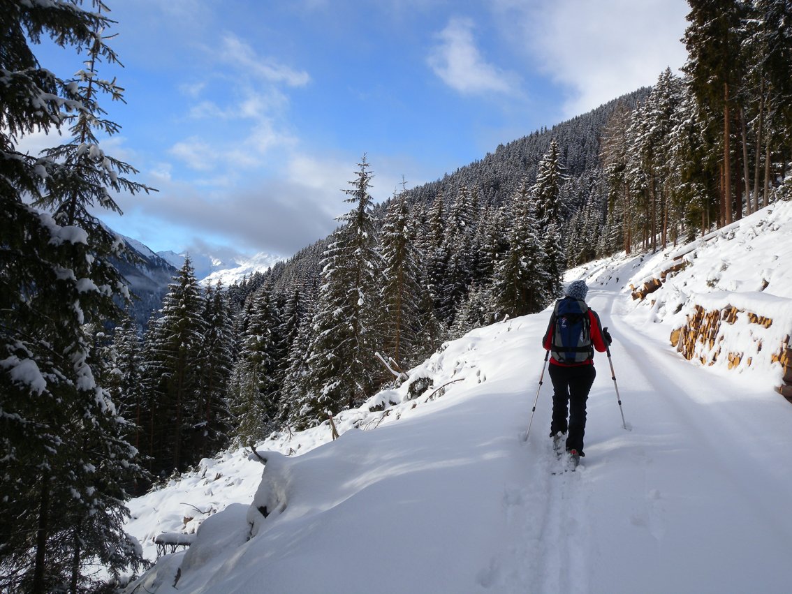 Die Tour ist anfängertauglich (auf der Forststraße) und bei vernünftiger Spurwahl auch kaum lawinengefährlich (der letzte kurze Hang kann aber bei viel Schnee evtl. etwas heikel sein).