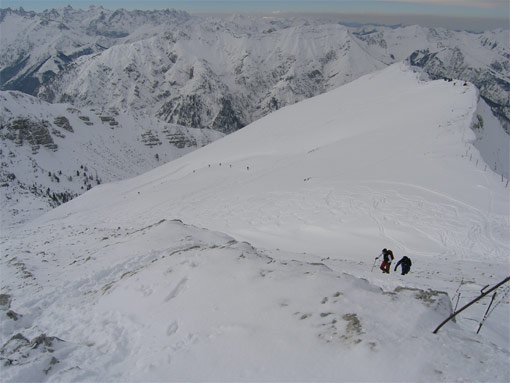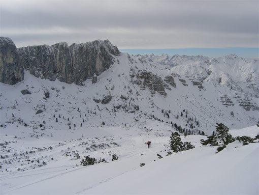 Man kann auch vom Mitterleger direkt zum Kotalmjochkamm aufsteigen - dies aber nur bei sehr sicheren Verhältnissen (oben meist abgeblasen).