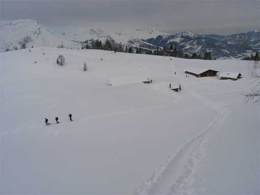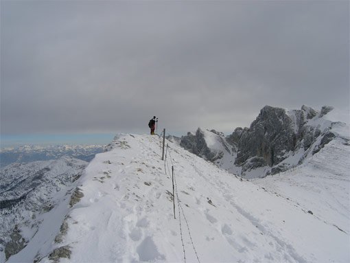 Beim Gipfelhang auf sichere Schneeverhältnisse achten, bei sehr viel Neuschnee kann auch die exponierte Passage auf der Forststraße vor dem Kotalm Niederleger ein Problem werden.