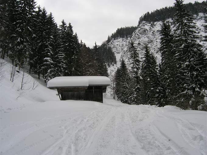 Von der Inntalautobahn bei Wiesing abfahren und zum Achensee hinauf. Dem See entlang, bis nach einer Tunnelpassage links eine Parkmöglichkeit bei einer Kapelle (eh. Hotel Achenseehof) kommt. Wenn man von Wildbadkreuth oder Bad Tölz kommt ist der Parkplatz rechts etwas vor dem Tunnel.