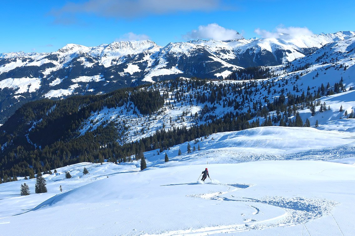 Die Skitour auf den Lodron ist der Einsteiger-Klassiker im Windautal. Sanfte Skihänge, welche durch Forstwege unterbrochen werden, führen hinauf zum Kamm. Oben dann auf dem breiten Kamm zum flachen Gipfelplateau mit dem großen Gipfelkreuz. Tolle, sehr beliebten Skitour, die auch bei etwas unsicheren Schneeverhältnissen bei vernünftiger Spuranlage gemacht werden kann. Belohnt wird man mit einem schönen Weitblick über die Kitzbüheler Alpen und einer landschaftlich schönen, einfachen Aufstiegsroute.