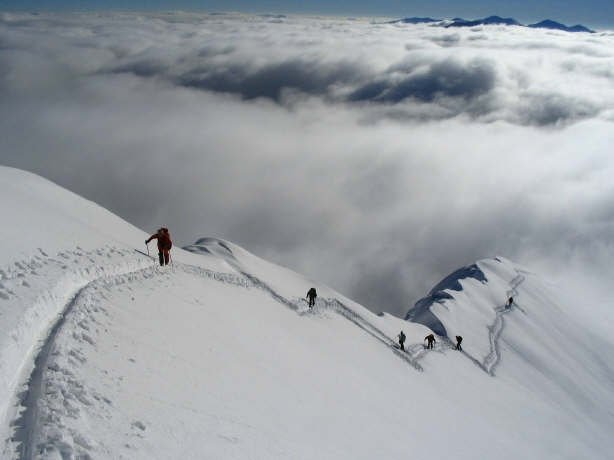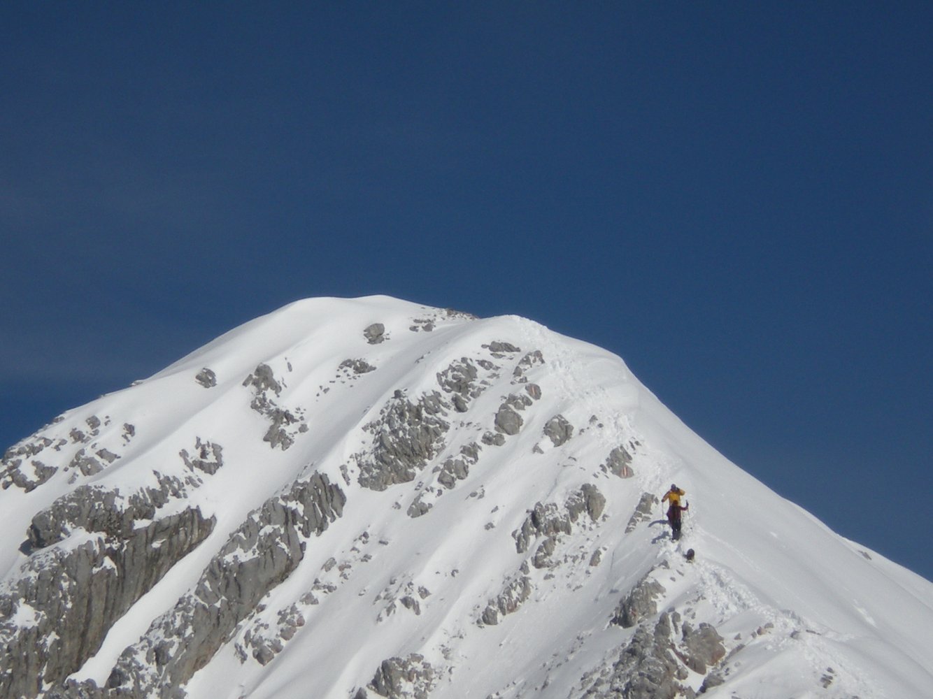 Die Abfahrt erfolgt wieder über die Aufstiegsspur. Wenn man dann doch vor der Lugauer Plan steht, ist man in ca. einer guten Stunde auf dem Gipfel. Am Ende stellt sich die Lugauer Plan etwas steiler auf. Hier ist auch auf Lawinengefahr zu achten.