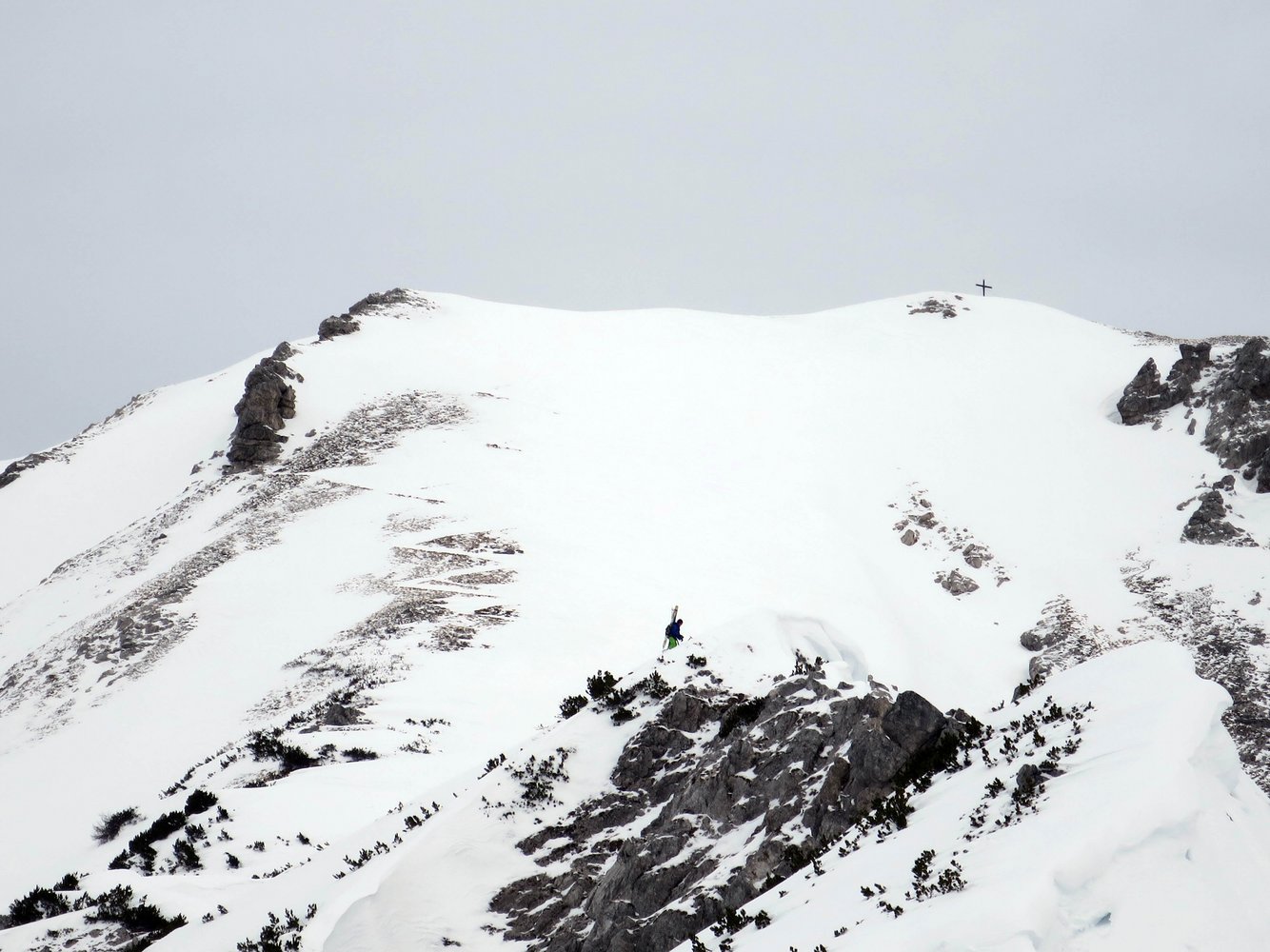 Abfahrt: Vom Gipfel in westlicher Richtung dem Weg zum Hexenturm folgen und links halten, bis eine Querrine ins Roßkar führt. Durch das Roßkar bis zum Ende abfahren und dann rechts zur Müllneralm und ab der Alm einer Forststrasse zu der Brücke über der Pölzlalm.