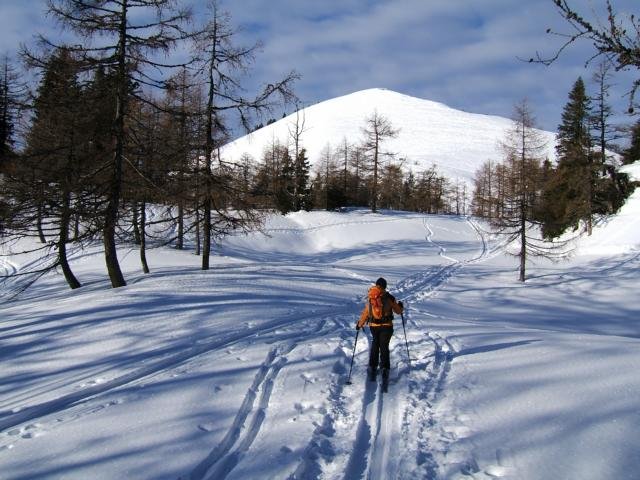 Einfache Skitour die abgesehen vom Gipfelhang eher eine Skiwanderung ist. Gerade dieser Umstand macht den Pitscherberg zum beliebten Anfängerziel.