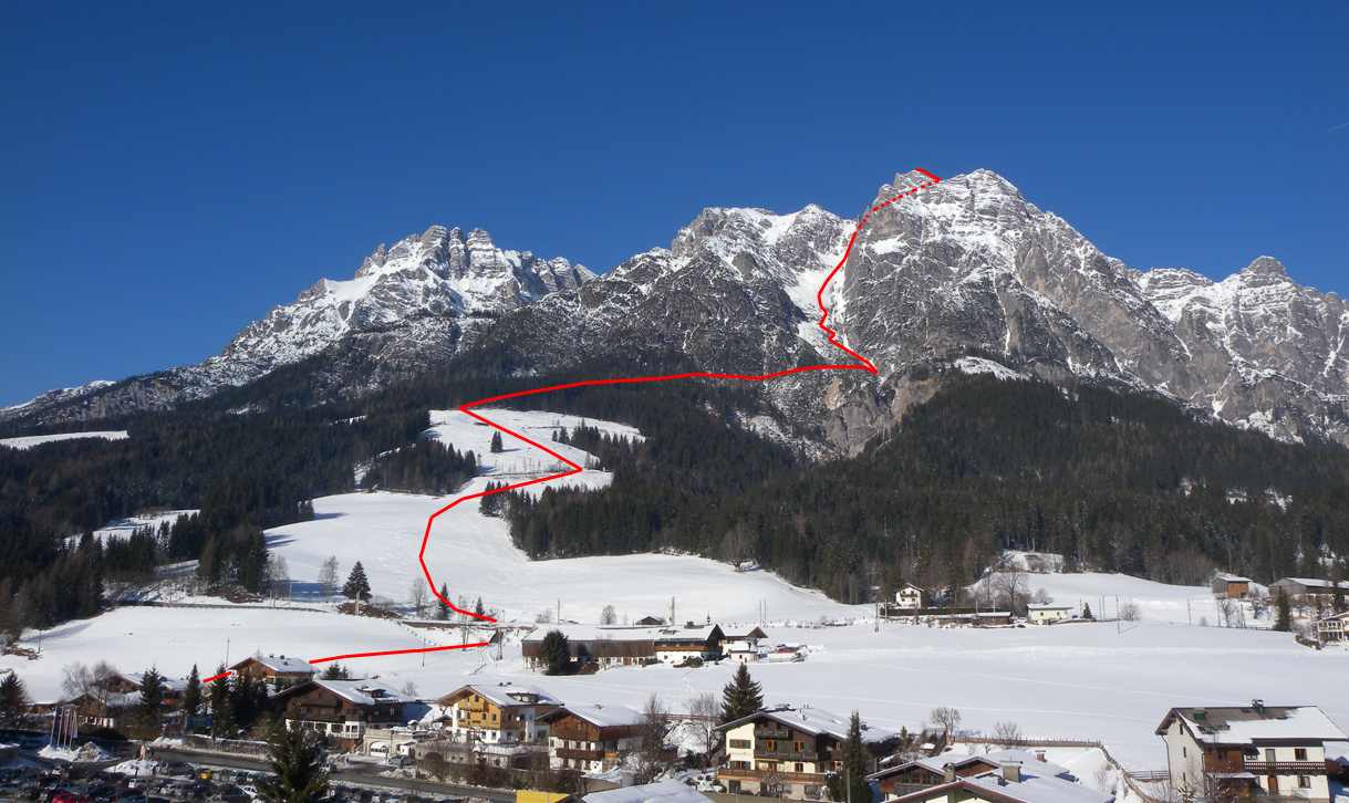 Über Fieberbrunn oder Saalfelden nach Leogang und beim nördlichen Parkplatz der Leoganger Bergbahnen parken (Parkplatz auf der gegenüberliegenden Straßenseite beim Skigebiet).