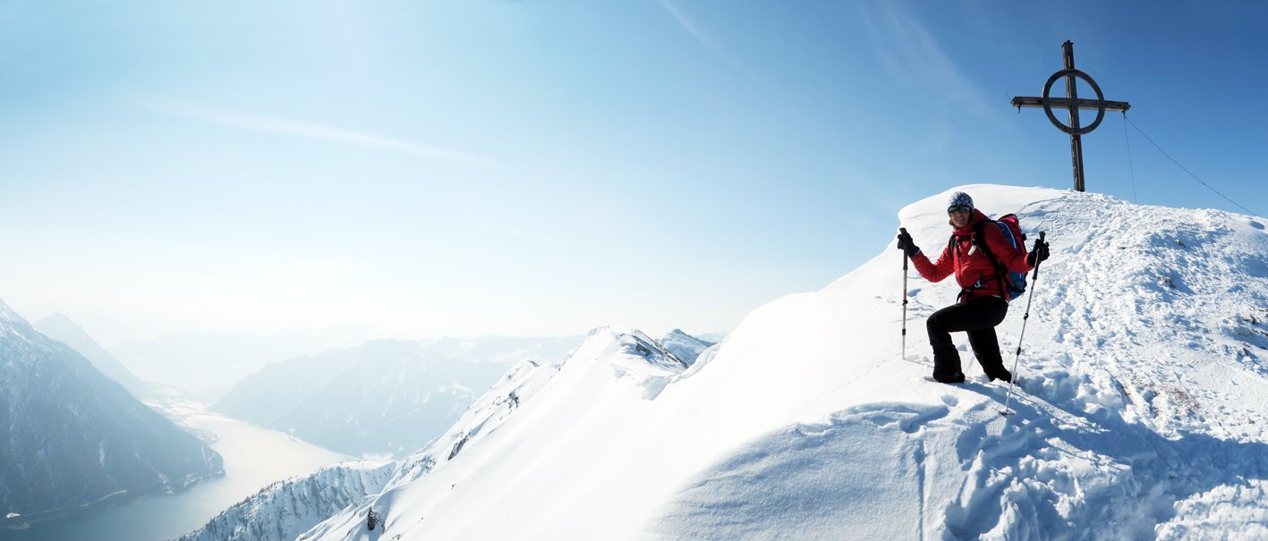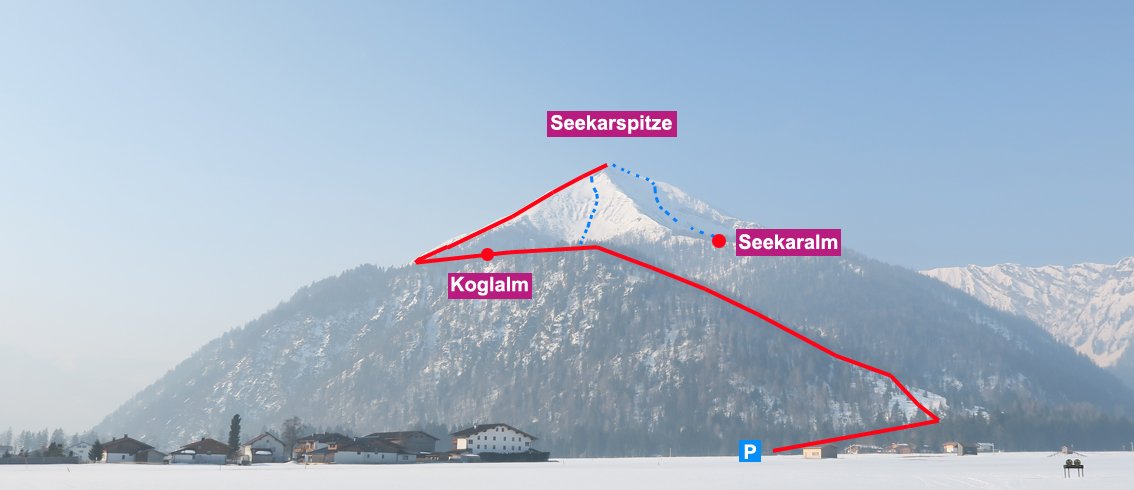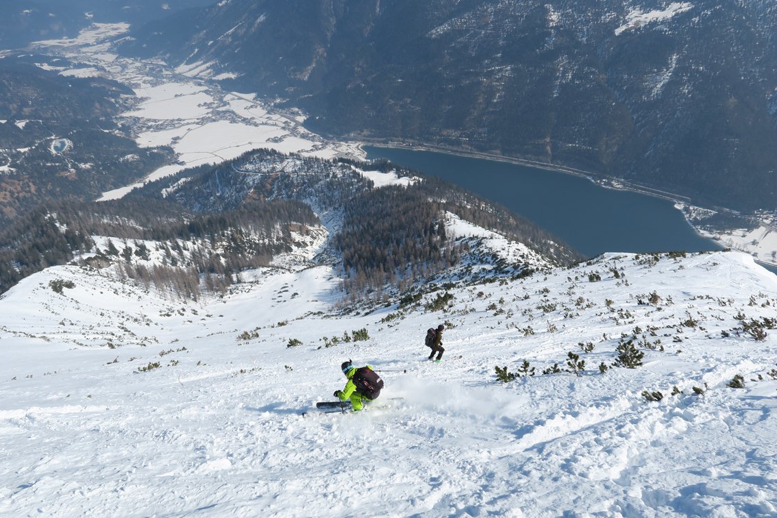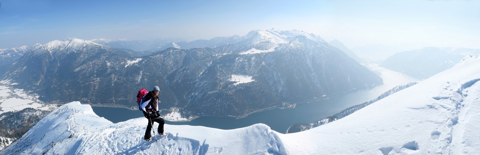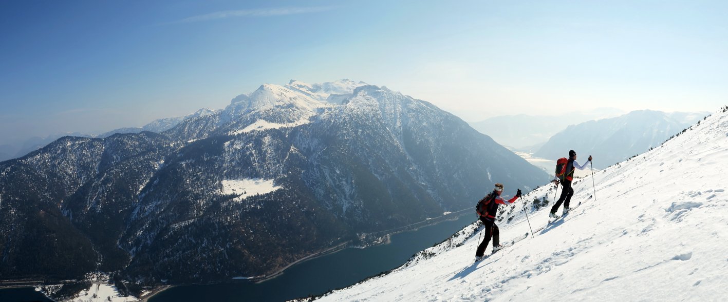 Seeblick par excellence - anders kann man den Aufstieg zur Seekarspitze gar nicht beschreiben. Im steilen Gelände seine Spitzkehren machen und den ganzen Achensee überblicken, was will man mehr! Die Tour gehört sicher zu den besten Skitouren am Achensee und hat oben noch ein schönes, nicht allzu schweres Kraxelfinale. Die letzten Meter geht man auf auf dem flachen Kamm zum mächtigen Gipfelkreuz. Bei der Abfahrt an der Ostflanke, direkt auf den blauen Achensee zu, fühlt man sich fast wie in Norwegen!