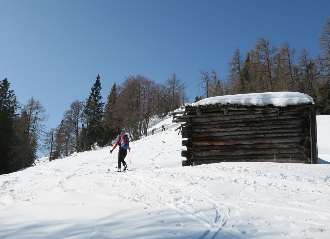 Abfahrt: Wie Aufstieg. Alternativ kann man eines der beiden Nordkare abfahren (Schwierigkeit 4) oder man fährt vom Skidepot den schönen Osthang (Seebergmahd) etwas hinunter bis man dann wieder nach links zu Aufstiegsspur quert (wer zu weit hinunter fährt muss wieder aufsteigen).