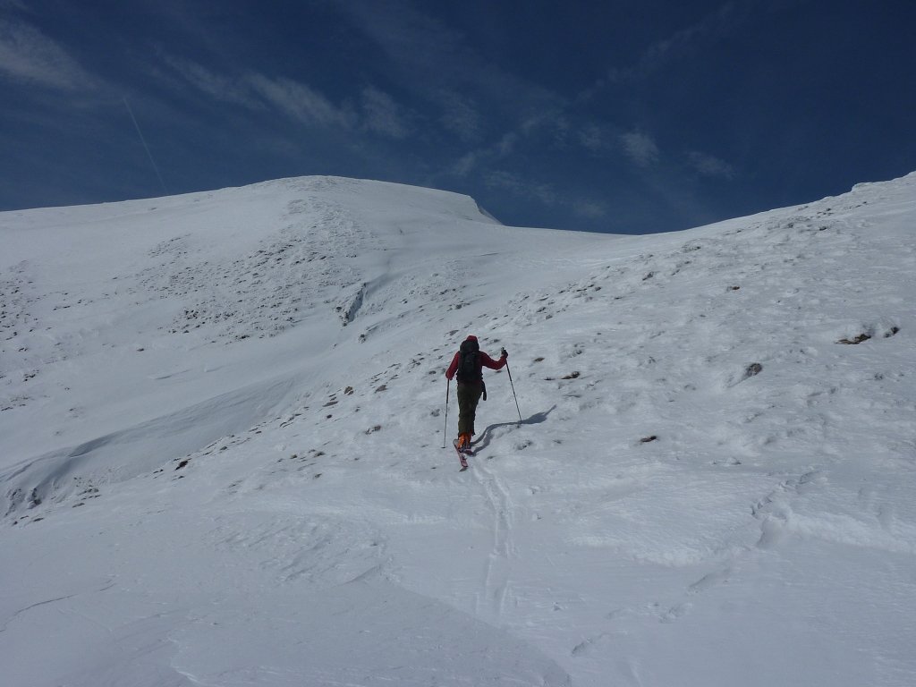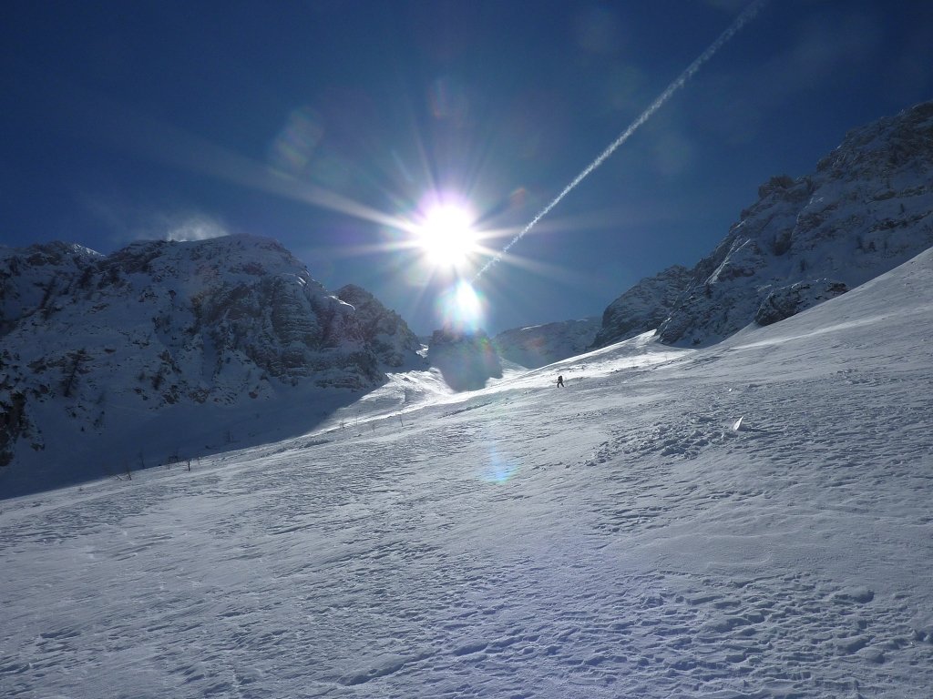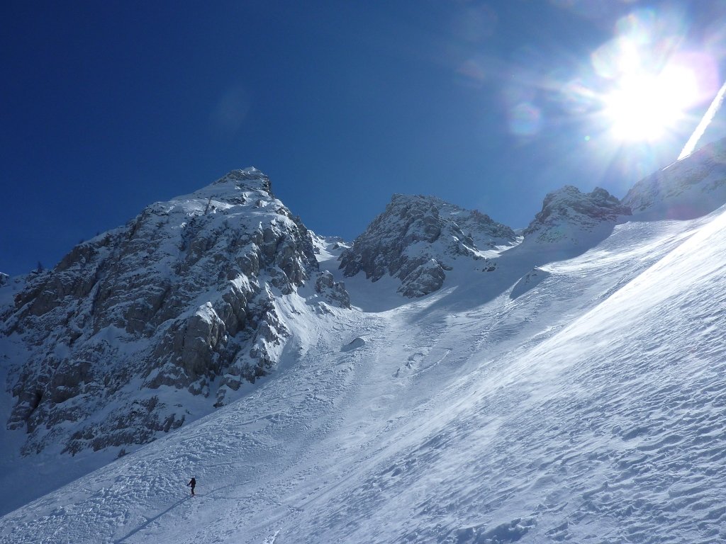 Sehr schöne, kurze, übersichtliche aber durchaus rassige Skitour, die durch eine Pistenbenützung eine vollkommen hindernislose Abfahrt durch ein breites, 35° steiles Kar ermöglicht. Etwa ein Drittel der Abfahrt ist Piste, allerdings ist der Lift oft nur an Wochenenden in Betrieb. Die Tour ist vom Charakter dem bekannten Wertatschakar ziemlich ähnlich. Obwohl 35° steil, wurde die Tour mit “leicht-mittel” bewertet, da sonst keine kritischen Stellen auftreten.