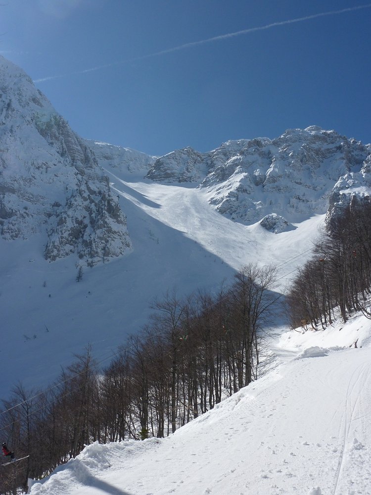ABFAHRT: Wie Aufstieg. Im unteren Teil des Kares fährt man nicht zur Forststraße, sondern direkt zur Mittelstation ab.