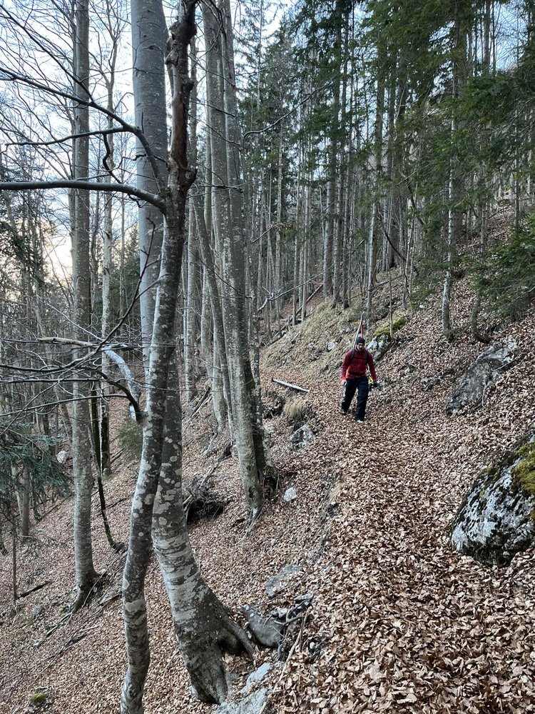 Mlinarica-Skitour - durch Buchenwaelder aufwärts