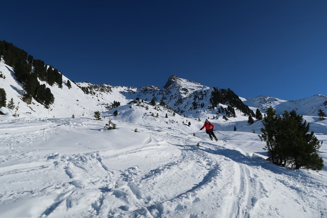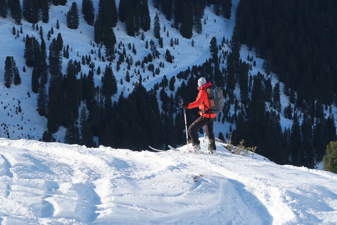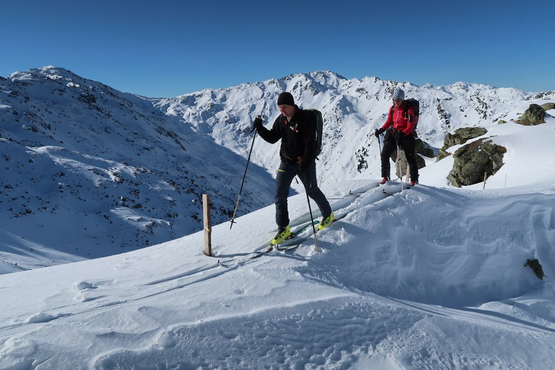 Es braucht auch etwas Erfahrung bei der Spuranlage - auch über etwas Klettergeschick für den Gipfelgrat (Stellen 1) sollte man verfügen.